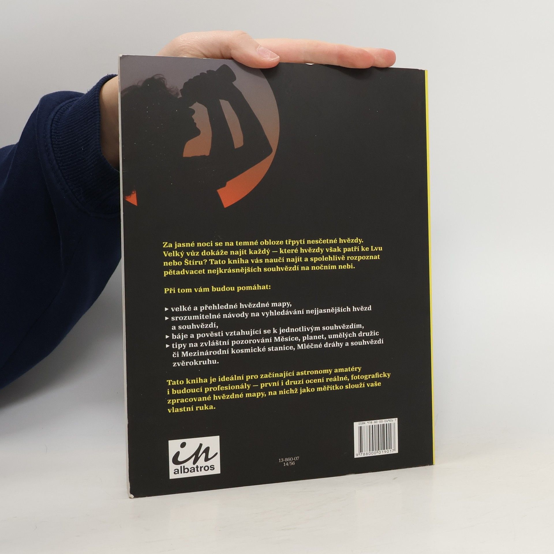 Díváte se rádi na hvězdy, ale chtěli byste se v té záplavě světel lépe vyznat? Vezměte si večer s sebou dalekohled, baterku a naši knihu. Poskytne vám velmi jednoduchý a praktický návod na to, jak hledat na noční obloze jednotlivá souhvězdí, poví vám něco málo o tom, jak vznikla jejich jména,a ke konci se krátce zmíní i o planetách naší sluneční soustavy, o Měsíci, kometách a zvěrokruhu.