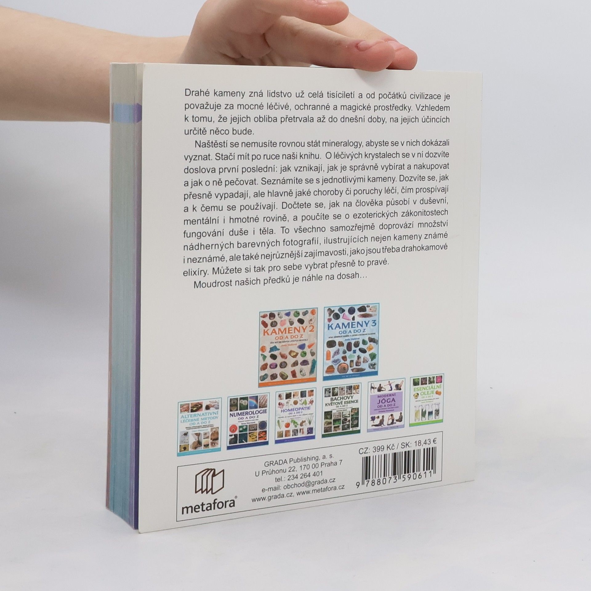 Podtitul: Podrobný průvodce světem léčivých krystalů Drahé kameny zná lidstvo už celá tisíciletí a od počátků civilizace je považuje za mocné léčivé, ochranné a magické prostředky. A protože jejich obliba přetrvala až do dnešní doby, na jejich účincích určitě něco bude. Na to, abyste se v nich dokázali vyznat, ale naštěstí nemusíte být mineralogové. Stačí mít po ruce naši knihu. Z ní se o krystalech dozvíte doslova první poslední: nejdříve jak vznikají, jak je správně nakupovat a pečovat o ně. A pak už se podíváme na každý jednotlivý kámen. Dozvíte se, jak přesně vypadá, ale hlavně jaké choroby či poruchy léčí, jak prospívá a k čemu se používá. Dočtete se, jak na člověka působí v duševní, mentální i hmotné rovině, a poučíte se o ezoterických zákonitostech fungování duše i těla. To všechno samozřejmě doprovází množství nádherných barevných fotografií, ilustrujících nejen kameny známé i neznámé, ale také nejrůznější zajímavosti, jako jsou třeba drahokamové elixíry. A moudrost našich předků je náhle na dosah