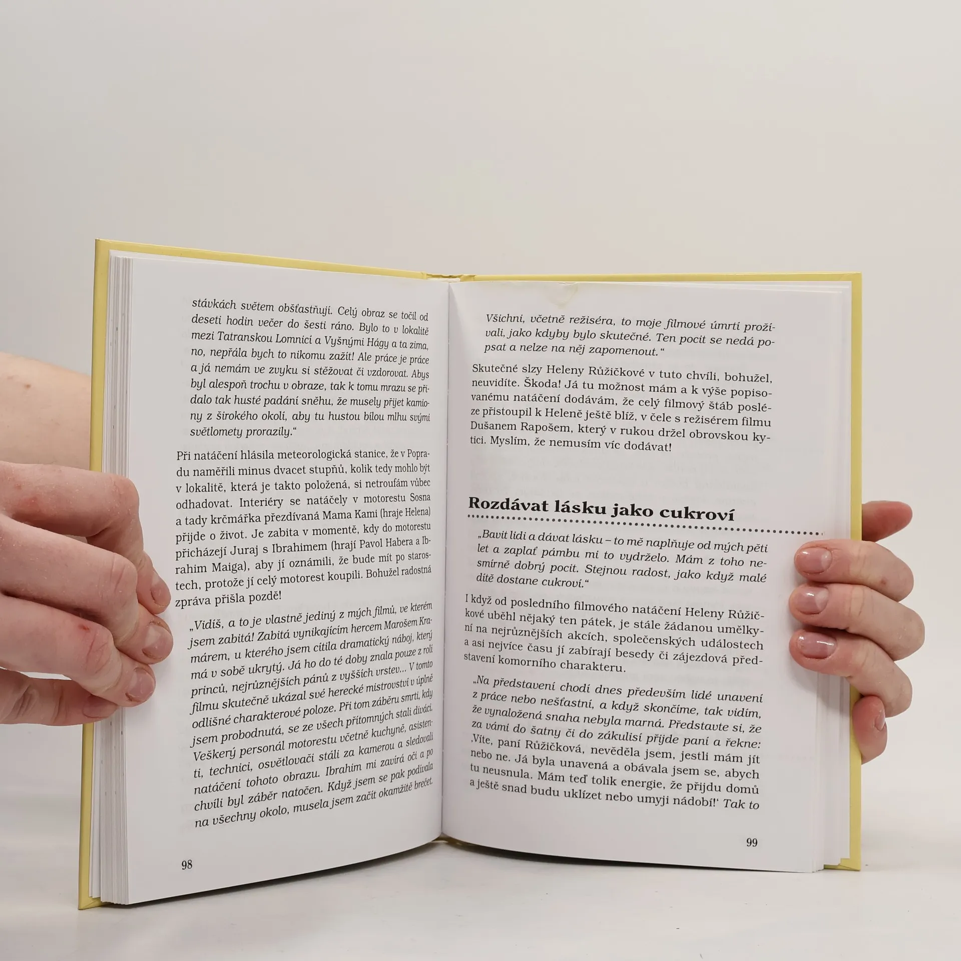 Vzpomínání Heleny Růžičkové je tentokrát vedeno formou rozhovoru. Rozhovor Heleny Růžičkové s Lubošem Nečasem na téma život, rodina, film, divadlo, přátelé... je variantou před časem vydané vzpomínkové knihy ... a tak jsem šla životem. Tím, že se jedná o dialog, působí vzpomínky o něco autentičtěji, třebaže se témata opakují. Ve svých vzpomínkách Helena Růžičková oživuje mimo jiné i léta normalizace, kdy nemohla hrát. Knížka je doplněna neúplným soupisem filmových rolí.