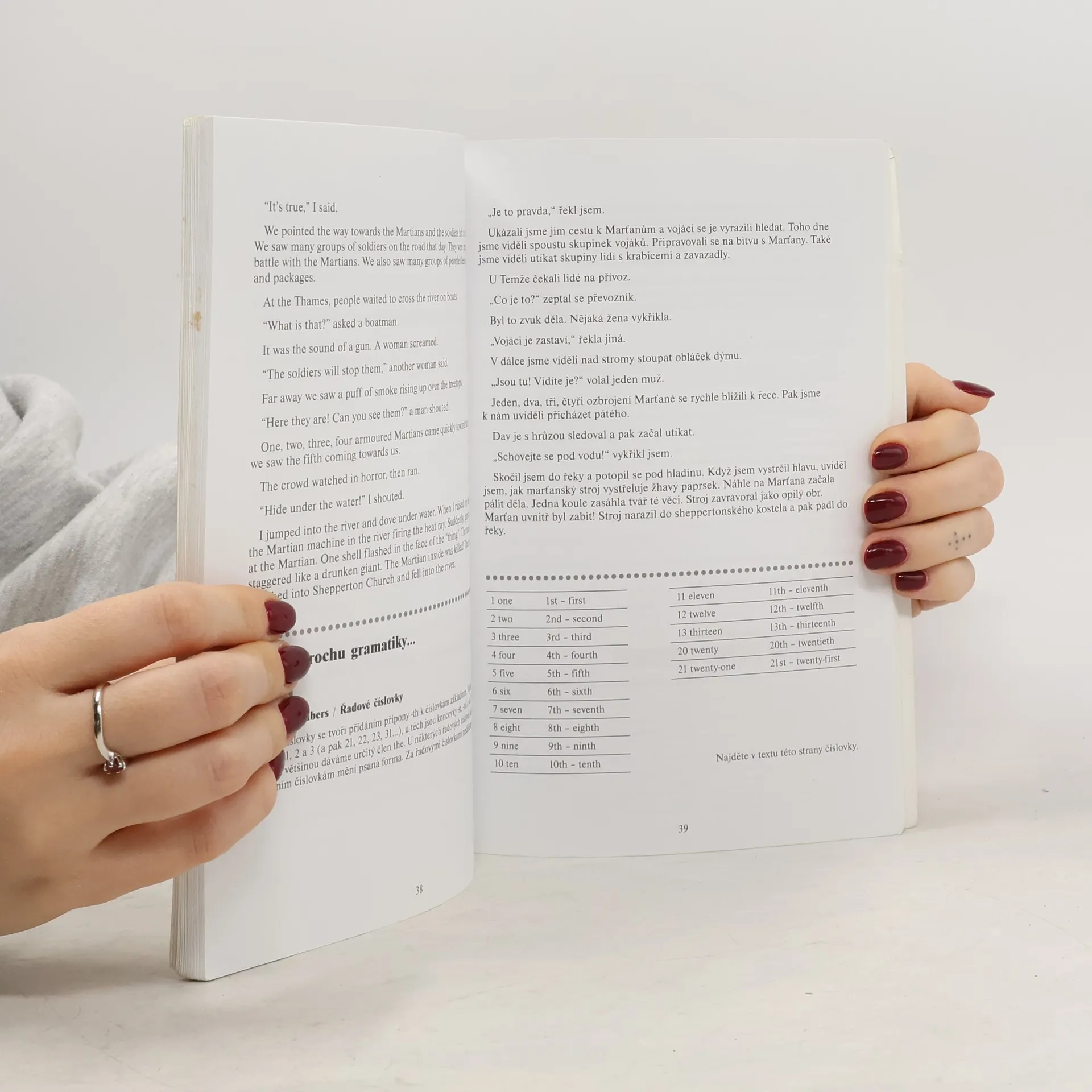 Román G. H .Wellse „War of the worlds“ patří mezi první vlaštovky žánru sci-fi, získal světovou proslulost a dočkal se mnoha zfilmování (naposledy Stevenem Spilbergem, kdy byl do hlavní role obsazen Tom Cruise). Jeho zjednodušená verze v této knize je určena pro mírně pokročilé studenty anglického jazyka. Účelem je především rozšířit slovní zásobu, ale také schopnost rychle a bezpečně porozumět mluvené angličtině. Kniha je formálně sestavena tak, aby studentovi umožňovala co největší komfort při tomto stylu učení. Obsahuje: - český překlad na protější / levé straně od anglického textu - kontrolní otázky, jak jste porozuměli anglickému textu - okomentované zajímavé gramatické jevy - slovníček s fonetickým přepisem na konci knihy Na audio CD najdete román v angličtině namluvený rodilým mluvčím, a to v pomalém i běžném hovorovém tempu! Můžete tak text poslouchat a zároveň kontrolovat psaný v knize. Zjistíte, že učení hrou vám umožní zapamatovat si mnohem více, a hlavně je radostné i zábavné!