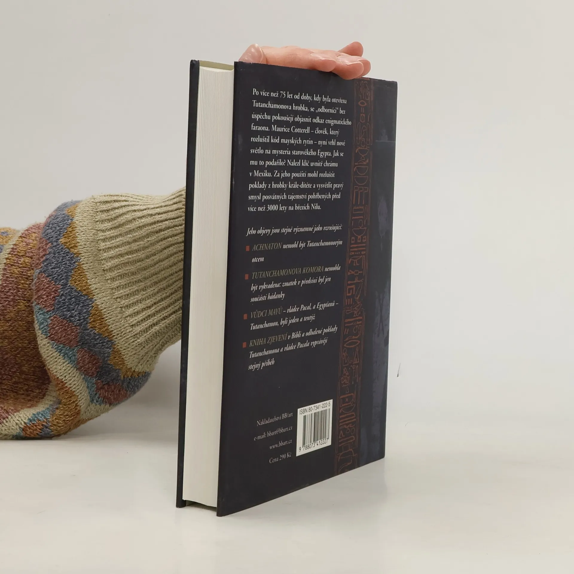 Po více než 75 let od doby, kdy byla otevřena Tutanchamonova hrobka, se "odborníci" bez úspěchu pokoušejí objasnit odkaz enigmatického faraona. Maurice Cotterell - člověk, který rozluštil kód mayských rytin - nyní vrhl nové světlo na mysteria starověkého Egypta. Jak se mu to podařilo? Nalezl klíč uvnitř chrámu v Mexiku. Za jeho použití mohl rozluštit poklady z hrobky krále-dítěte a vysvětlit pravý smysl posvátných tajemství pohřbených před více než 3000 lety na březích Nilu. Jeho objevy jsou stejně významné jako vzrušující: - Achnaton nemohl být Tutanchamonovým otcem - Tutanchamonova komora nemohla být vykradena: zmatek v předsíni byl jen součástí hádanky - Vůdci Mayů - vládce Pacal a Egypťanů - Tutanchamon, byli jeden a tentýž - Kniha zjevení v Bibli a odhalené poklady Tutanchamona a vládce Pacala vyprávějí stejný příběh