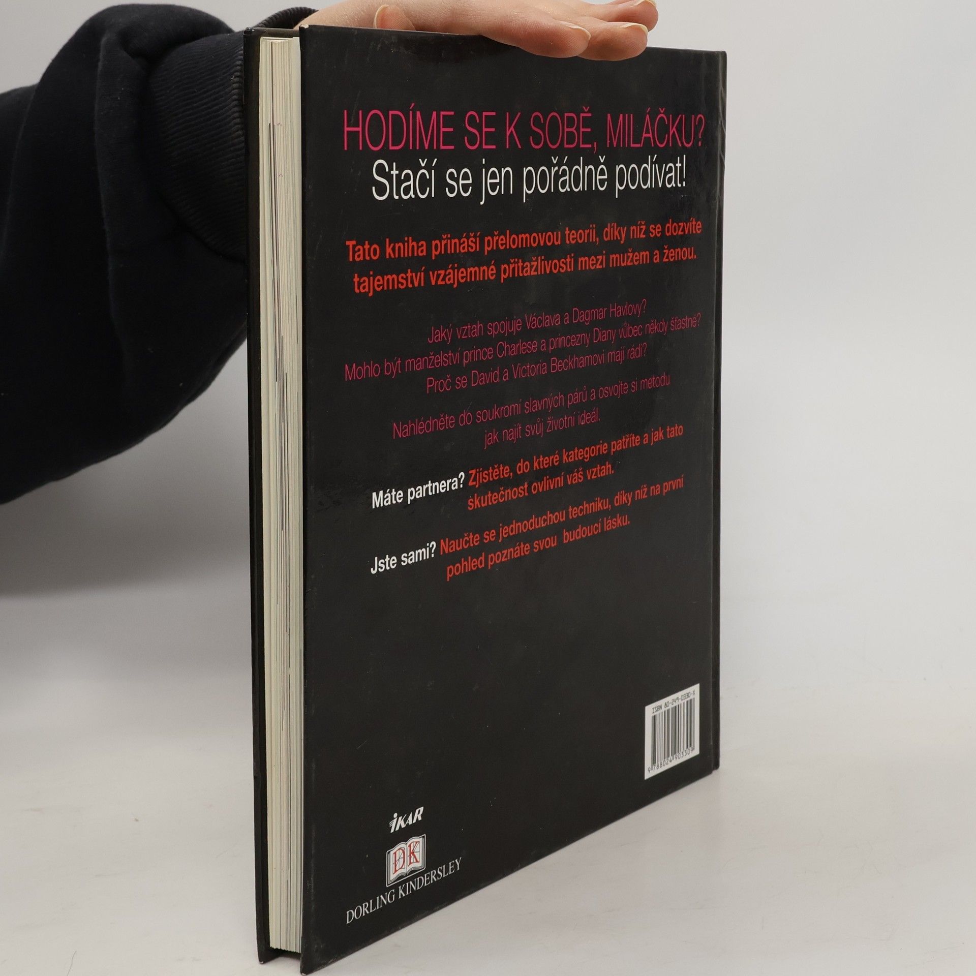 Jedná se o příběhy vztahu známých osobností i rady ohledně přitažlivosti mezi mužem a ženou. Hodíme se k sobě, miláčku? Stačí se jen pořádně podívat! Tato kniha přináší přelomovou teorii, díky níž se dozvíte tajemství vzájemné přitažlivosti mezi mužem a ženou. Jaký vztah spojuje Václava a Dagmar Havlovy? Mohlo být manželství prince Charlese a princezny Diany vůbec někdy šťastné? Proč se David a Victoria Beckhamovi mají rádi? Nahlédněte do soukromí slavných párů a osvojte si metodu jak si najít ideálního partnera. Máte partnera? Zjistěte, do které kategorie patříte a jak tato skutečnost ovlivní váš vztah. Jste sami? Naučte se jednoduchou techniku, díky níž na první pohled poznáte svou budoucí lásku.