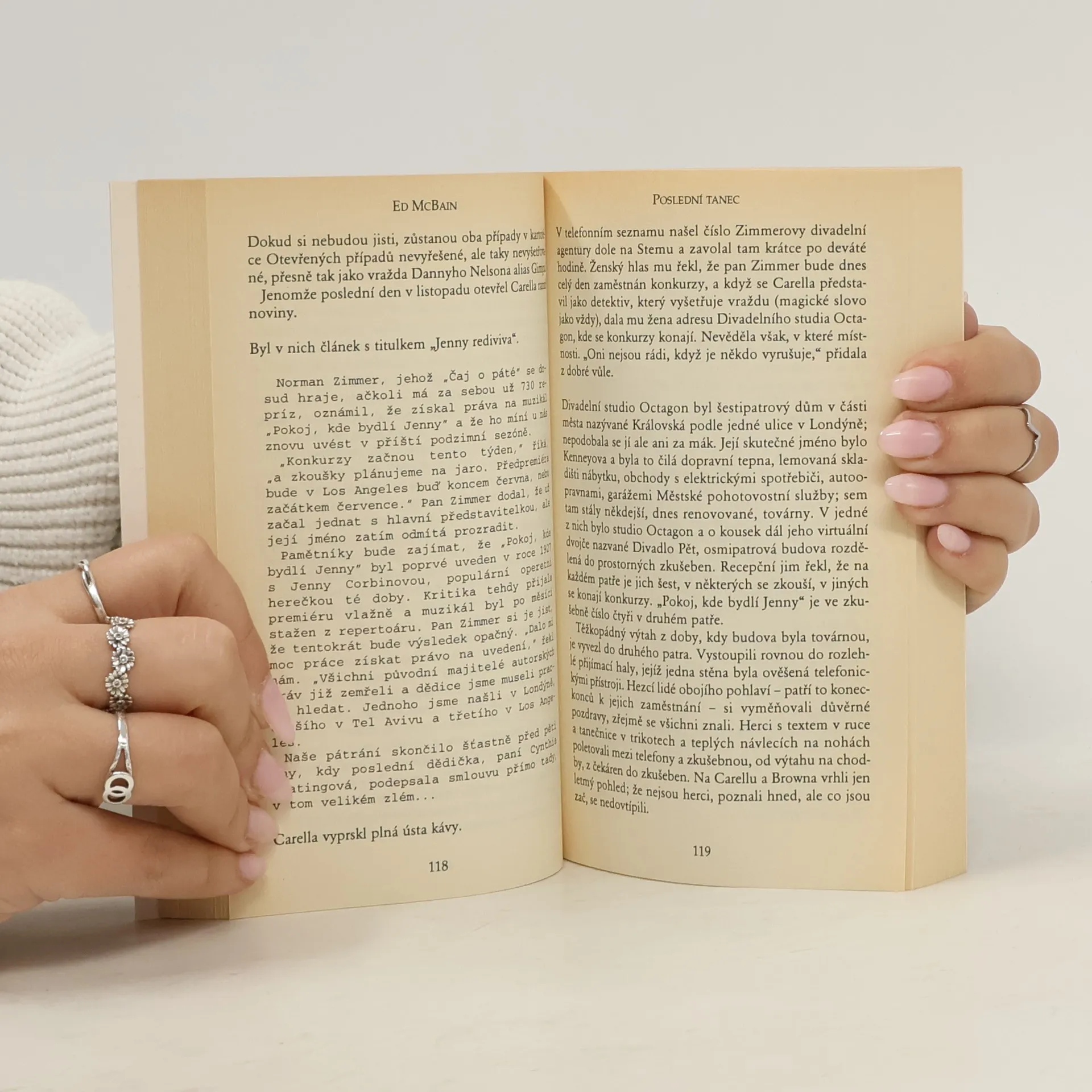 Proč má starý kardiak, jenž údajně zemřel pokojně ve spánku, na krku stopy po oprátce? Maskuje dcera otcovu sebevraždu jen proto, aby zúročila životní pojistku? Potřebuje tak moc tu v podstatě zanedbatelnou částku, když je provdána za prosperujícího, dravého právníka? A může se vůbec oběsit člověk nadopovaný prášky pro spaní až do bezvědomí - právě takový stav zemřelého totiž odhalila soudní pitva? Carella, Meyer, Kling a všichni ostatní hoši z 87. revíru chtějí zpočátku jen zamezit pojišťovacímu podvodu. Avšak jak se do případu zvolna noří, zjišťují, že má kořeny zarostlé nejen hluboko do zločinného bahna krutého velkoměsta Isola, ale i do hloubi minulosti. Někde v jejím šeru se zrodil hitový muzikál, který ve své době vzal útokem všechna významná jeviště. Když se po půl století rozhodnou kapitáni showbyznysu pro jeho oživení, narazí na rozhodný odpor držitele autorských práv, o jehož existenci neměli tušení. Tím je až do své záhadné smrti nenápadný muž s nemocným srdcem, zdánlivě bez nepřátel. Jeho úmrtí tak náhle ozáří ostrá světla ramp a v jejich záři musí Carellova parta zločin vyřešit.