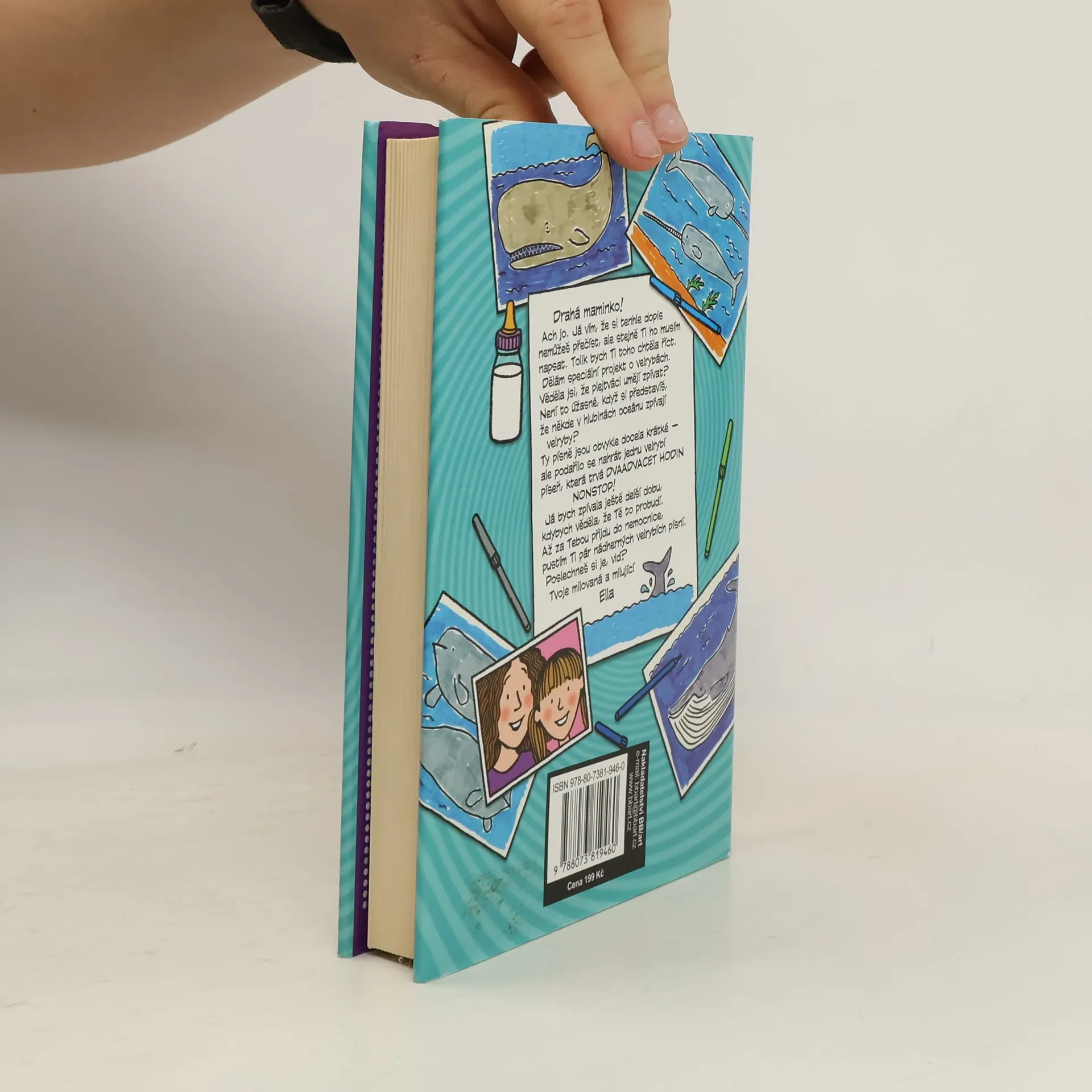 Může Ellina láska vzbudit mámu z kómatu? Ella se cítí bolestně osamělá. Její nejlepší kamarádka si našla jinou nejlepší kamarádku. Její nevlastní táta je unavený a nevrlý. A jejich nové miminko v jednom kuse řve. Nejhorší je ale to, že její máma leží v nemocnici v kómatu. Nemůže s Ellou mluvit, nemůže ji pohladit, nemůže ji obejmout. Školní projekt, který ve škole začali, vypadá zezačátku docela nudně, ale čím víc se toho Ella dozvídá o velrybách, tím víc ji okouzlují. Velryby dokážou zpívat celé hodiny - posílají si navzájem pod vodou své písně lásky. Může se velrybí píseň dostat až k mámě do jejího tak vzdáleného a mlčenlivého světa? Pro čtenáře od 10 let.