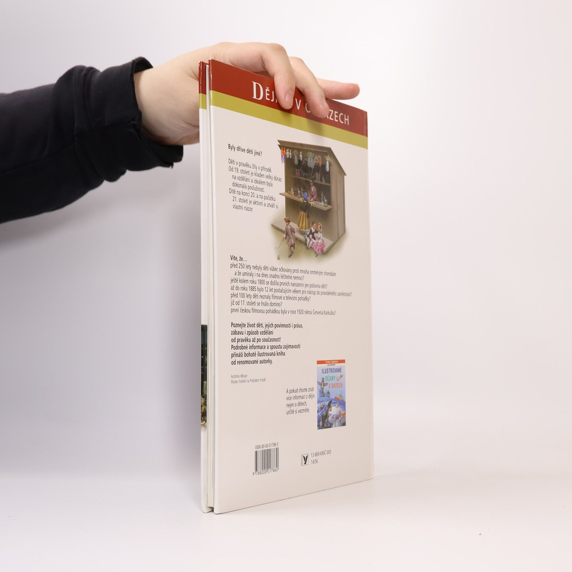 Doplněk k čtrnáctidílnému cyklu Dějiny v obrazech. Je věnován dítěti a dětství v průběhu dějin od pravěku až do současnosti. Knížka zobrazuje dítě v rodině, ve škole, ve světě; zmiňuje se o dětském oblékání, stravování, ukazuje dětské hračky a hry. Stejně jako Dějiny v obrazech je i tato publikace koncipována do tematických dvoustran plných barevných obrázků, které znázorňují proměny dětského světa a postavení dítěte ve společnosti. Doporučujeme také jako doplňkovou učebnici pro dějepis a občanskou výchovu na základních školách.