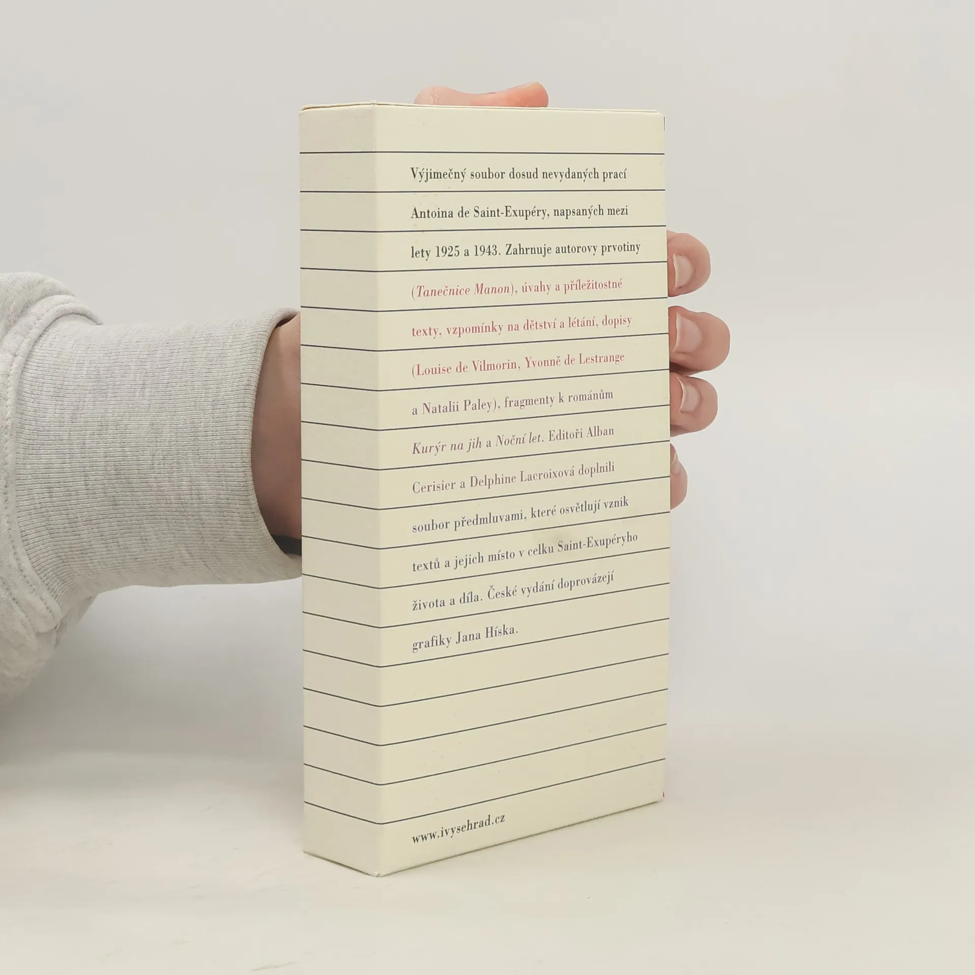 Skladem máme celkem knihy Tanečnice Manon. Letec. Texty ke Kurýru na jih a Nočnímu letu. Dnes večer jsem šel obhlédnout své letadlo. Věřit lidem je možné. Sedm dopisů Natalii Paley (2008).