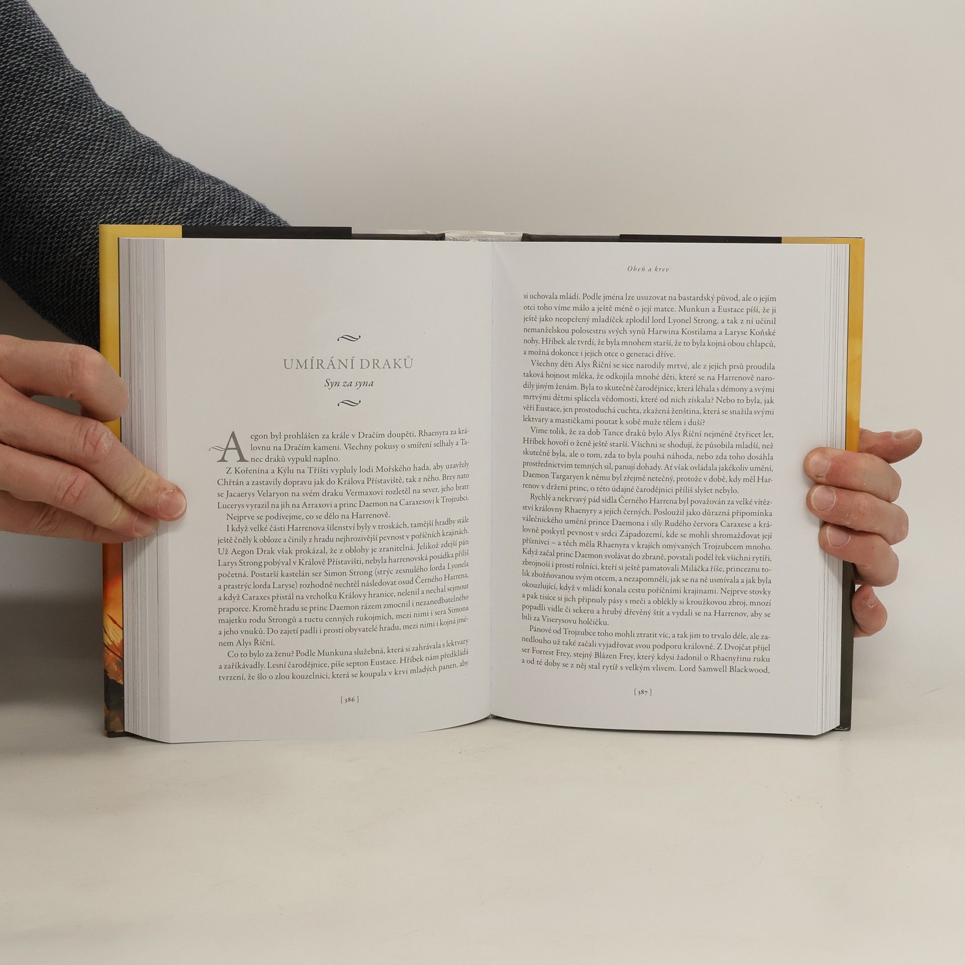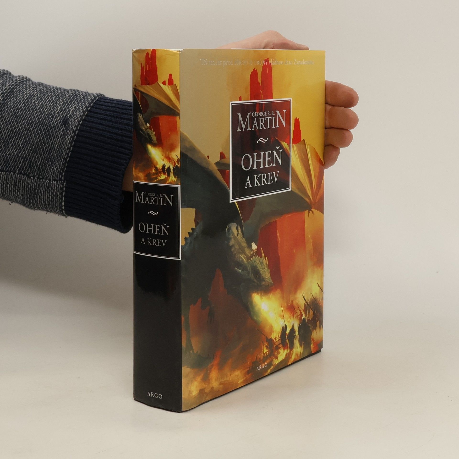 Historie targaryenských králů v Západozemí I. Staletí před událostmi líčenými ve Hře o trůny se rod Targaryenů – ti jediní z dračích pánů, kteří unikli Zkáze Valyrie – usídlil na Dračím kameni. Příběh Ohně a krve začíná u legendárního Aegona Dobyvatele, stvořitele Železného trůnu, a pokračuje přes generace Targaryenů bojujících o tento neblaze proslulý symbol, až po občanskou válku, která jejich dynastii téměř zničila. Co se doopravdy dělo během Tance draků? Proč bylo tak smrtelně nebezpečné vypravit se do Valyrie po Zkáze? Odkud pocházejí dračí vejce, která dostala Daenerys? To je jen několik z mnoha otázek, na něž najdete odpověď v kronice psané učeným mistrem Citadely a doprovázené desítkami ilustrací Douga Wheatleyho. Do tohoto příběhu jsme mohli letmo nahlédnout už v knihách, jako byl Svět ledu a ohně, ale teprve nyní se před námi spletitá historie Targaryenů odhaluje do posledního detailu. Oheň a krev, úvodní svazek dvoudílných dějin rodu Targaryenů, představuje ty nejvyhrocenější podoby hry o trůny a nabízí zcela nový pohled na bouřlivou, často krvavou a vždy fascinující historii Západozemí.