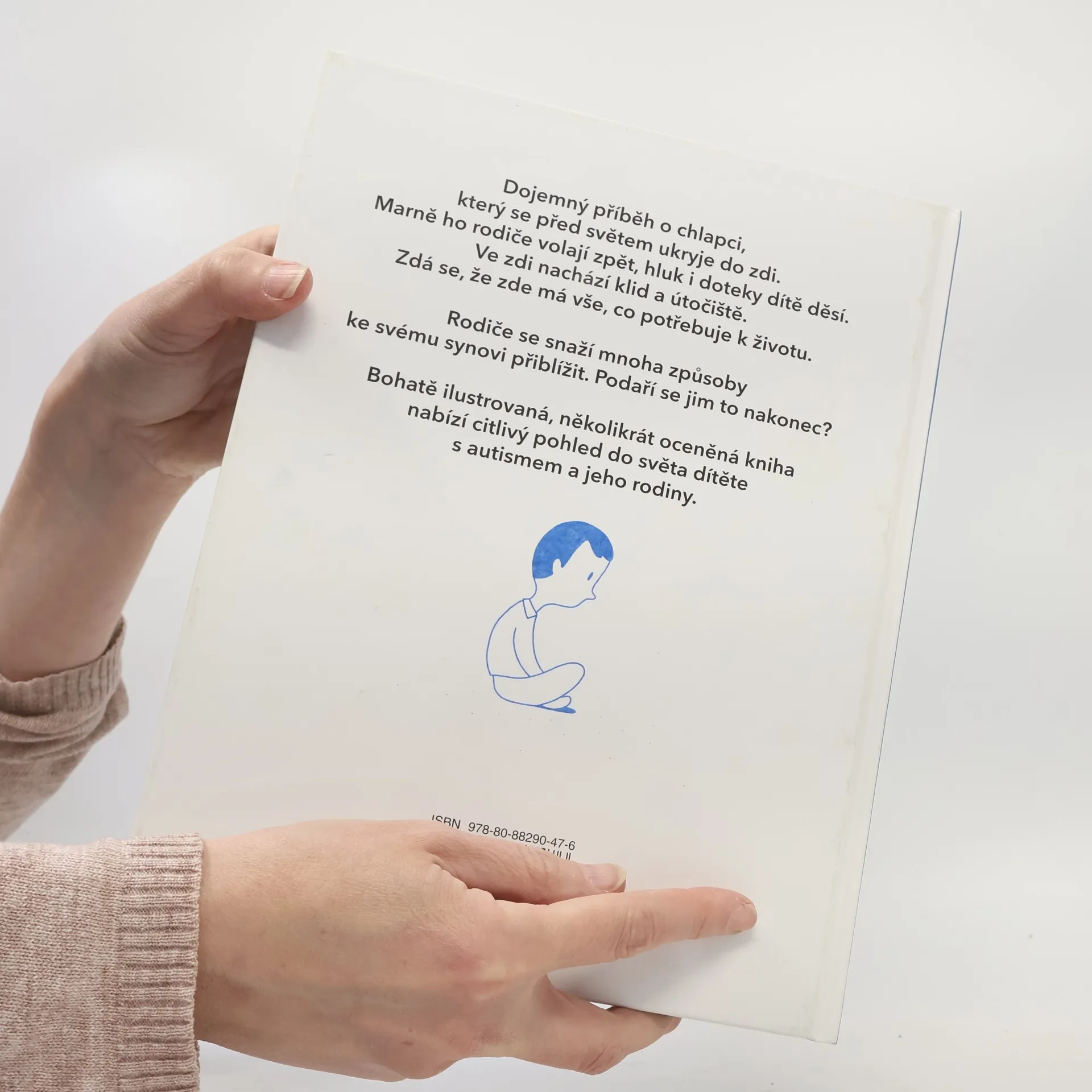 Dojemný příběh o chlapci, který se před světem ukryje do zdi. Marně ho rodiče volají zpět, hluk i doteky dítě děsí. Ve zdi nachází klid a útočiště. Zdá se, že zde má vše, co potřebuje k životu. Rodiče se snaží mnoha způsoby ke svému synovi přiblížit. Podaří se jim to nakonec? Bohatě ilustrovaná, několikrát oceněná kniha nabízí citlivý pohled do světa dítěte s autismem a jeho rodiny. Je vhodná pro práci s dětmi s diagnózou poruchy autistického spektra, nebo pro vysvětlení odlišnosti těchto dětí jejich okolí