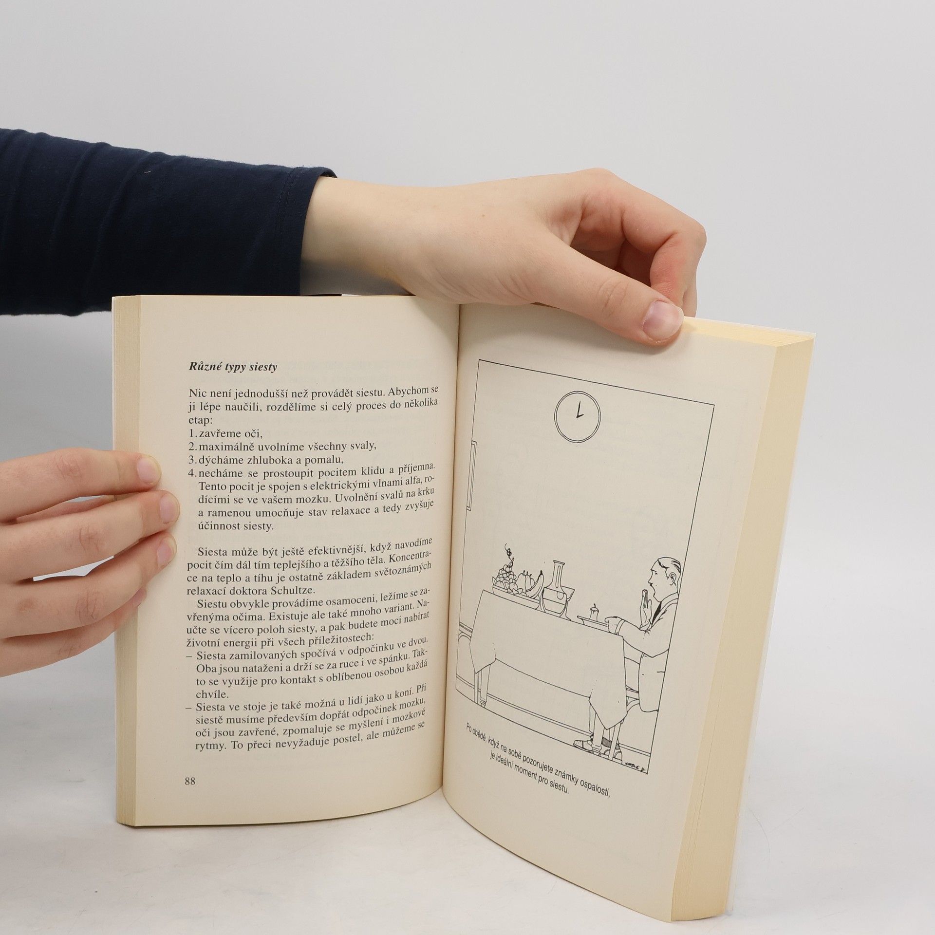 Bruno Comby v této praktické příručce představuje její detailní rozbor, protože siesta může přinést každému, jak prokázaly mnohé vědecké studie, velké dobrodiní. Posiluje zdraví, usnadňuje trávení a působí jako prevence srdečních onemocnění. Přináší úsporu času, protože zkracuje noční spánek. Rozvíjí tvořivost, představivost, intuici a zároveň umožňuje větší výkonnost v práci. Je skvělým prostředkem pro boj se stresem. Vytváří pocity přívalu energie, rozpouští napětí, dodává optimismus a je nezbytným pomocníkem při všech metodách rozvoje schopností člověka.