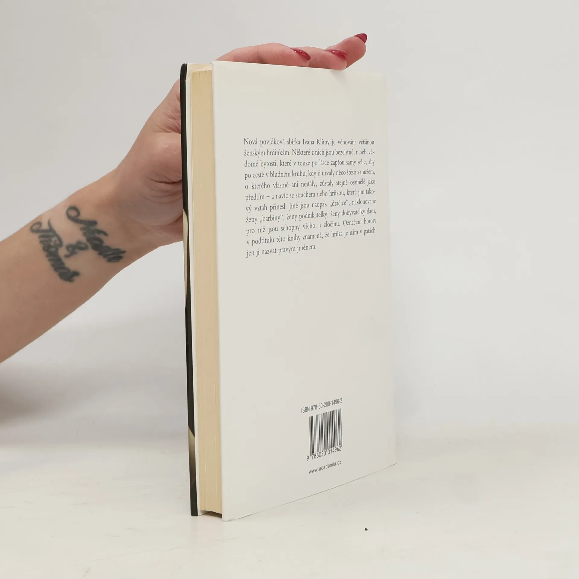 Nová povídková sbírka Ivana Klímy je věnována většinou ženským hrdinkám. Některé z nich jsou bezelstné, nepůvabné a nesebevědomé bytosti, které v touze po lásce zapřou samy sebe, aby poté, co si urvaly něco štěstí s mužem, o kterého vlastně ani nestály, zůstaly stejně osamělé jako předtím, navíc se strachem nebo hrůzou, které jim takový vztah přinesl. Jiné jsou naopak dračice, naklonované ženy barbíny, ženy podnikatelky, ženy dobyvatelky slasti, pro niž jsou schopny všeho, i zločinu. Označení horory v podtitulu této knihy znamená, že hrůza je nám v patách, jen ji nazvat pravým jménem.