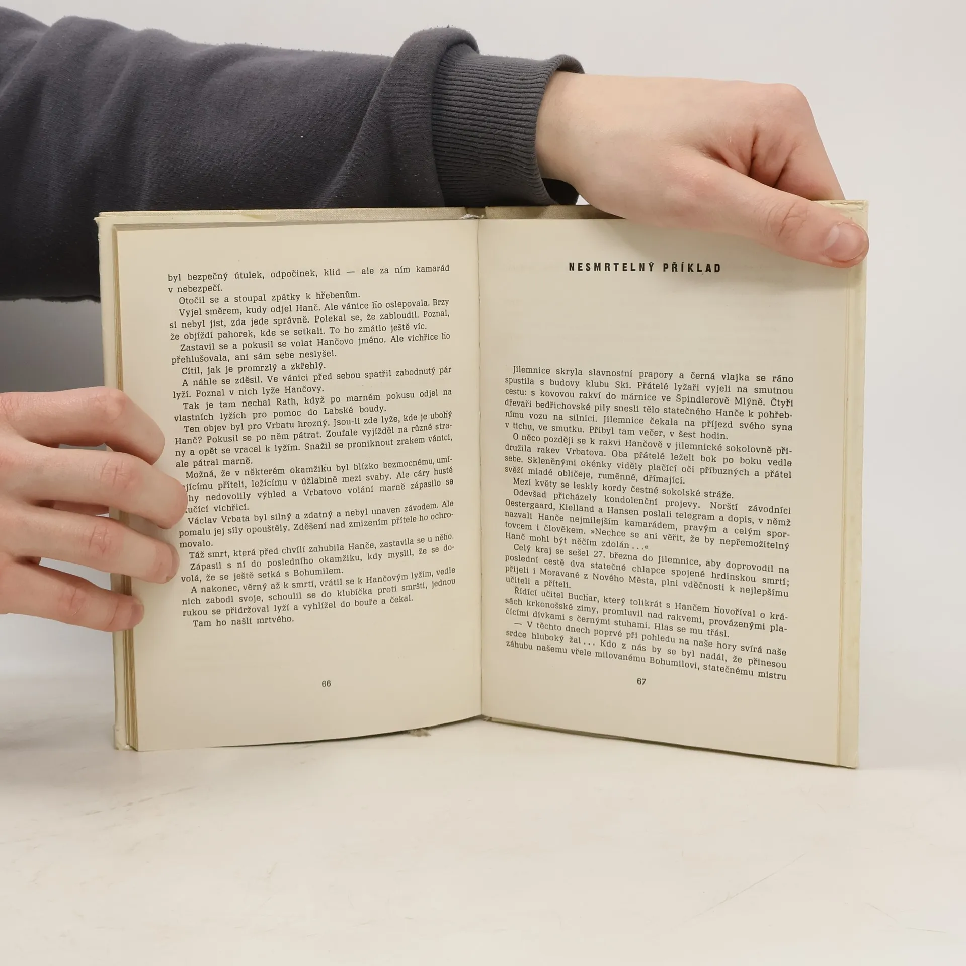Vyprávění podnes nezapomenutelného příběhu dvou českých sportovců, Bohumila Hanče a Václava Vrbaty, kteří při dramatickém závodě v běhu na lyžích 24. března 1913 na Zlatém návrší v Krkonoších se stali obětí rozběsněných živlů a jsou nepomíjivým vzorem chlapské statečnosti, obětavosti a přátelství opravdu až na smrt. Born Adolf ilustrace černobílé celostránkové.