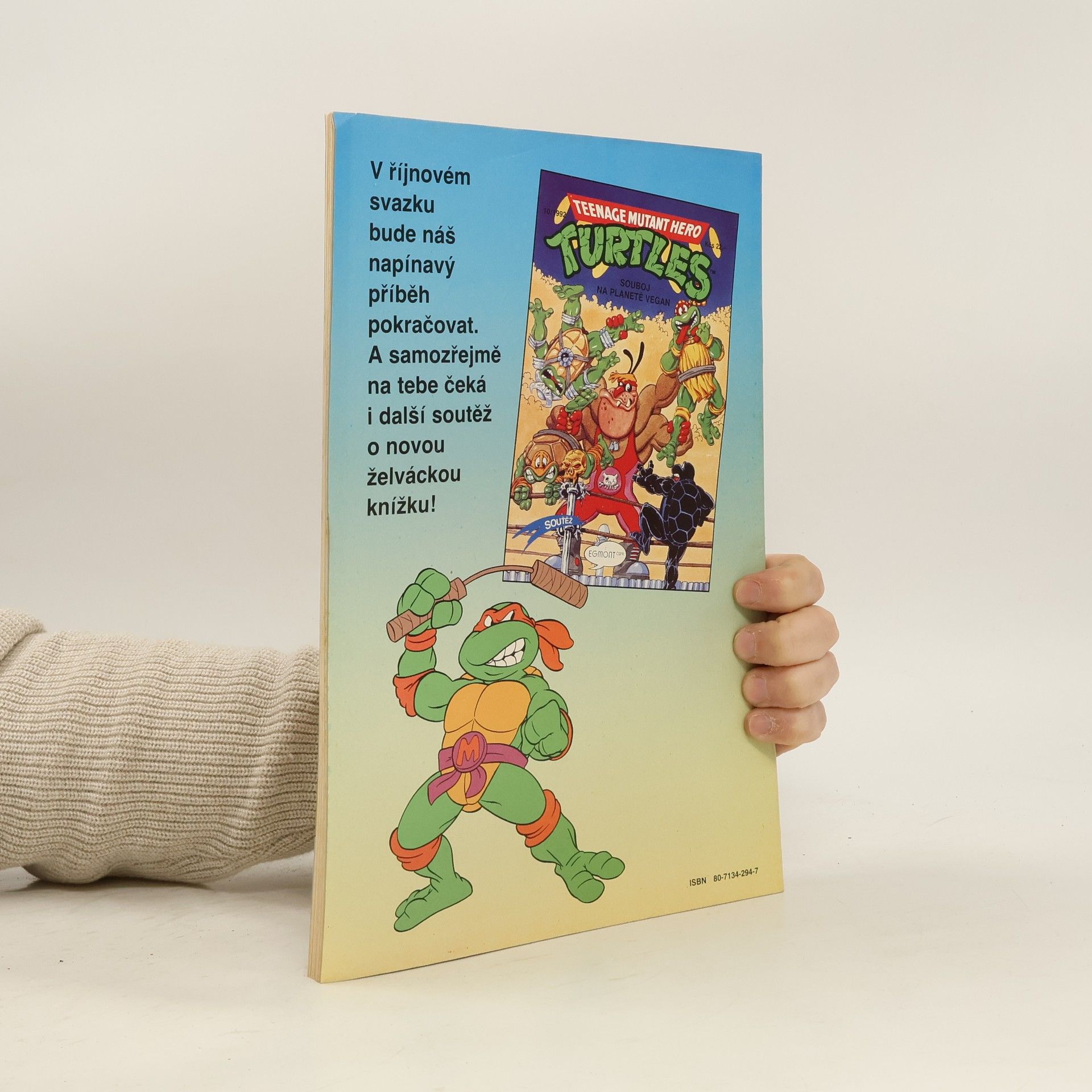 Příběh: Tajemný grál Sešit ze serie příběhu neunávných želvých bojovníků a milovníků pizzy - Donatellem, Michelangelem a Raffaelem. A nejen s nimi se setkáte, ale také s April O'Neilovou, atraktivní reportérkou, s Třískou, učitelem starého japonského bojového umění nindžutsu, a samozřejmě s Trhačem, jejich úhlavním nepřítelem, který chce ovládnout celý svět...