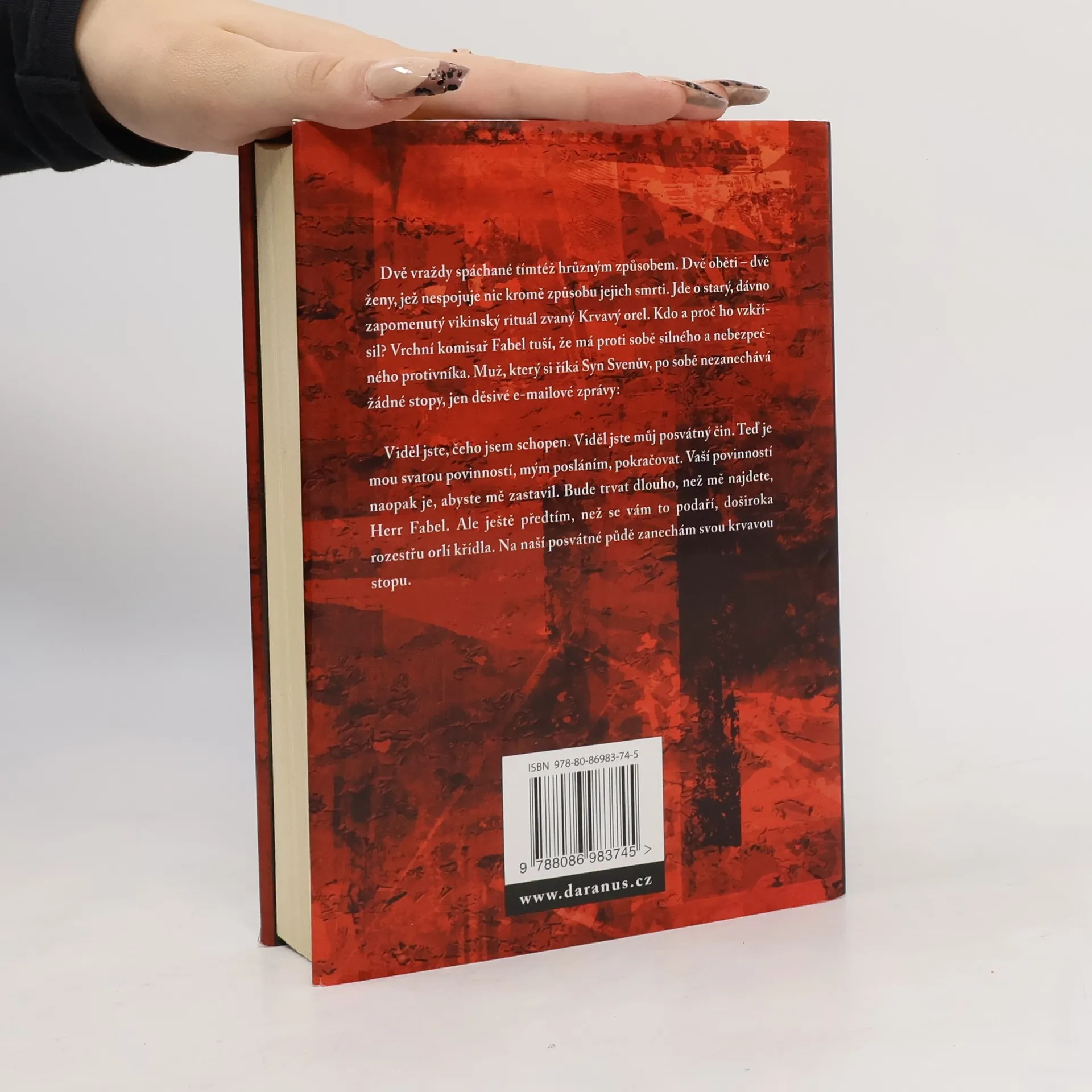 Ve svém románu Krvavý orel představuje Craig Russell detektiva Jana Fabela, vrchního komisaře hamburské policie, jemuž v žilách koluje skotská krev a který byl obdařen pronikavým intelektem i neomylným instinktem. Má pověst nejzkušenějšího muže Útvaru pro vyšetřování vražd a snad právě proto se s ním rozhodl utkat v nelítostném souboji démonický muž, který si říká Syn Svenův a má na svědomí životy dvou mladých žen. Obě zemřely děsivou smrtí při vikingském rituálu zvaném Krvavý orel, o němž se doufalo, že je dávno zapomenutý. Když detektiv Fabel začíná pátrat po tajemném vrahovi ještě netuší, že za hrůzami, které dvěma rituálními vraždami zdaleka nekončí, je něco mnohem strašlivějšího než náboženské blouznění. Soukolí zla se dává do pohybu a Jan Fabel stojí tváří v tvář nepříteli, který ho převyšuje.