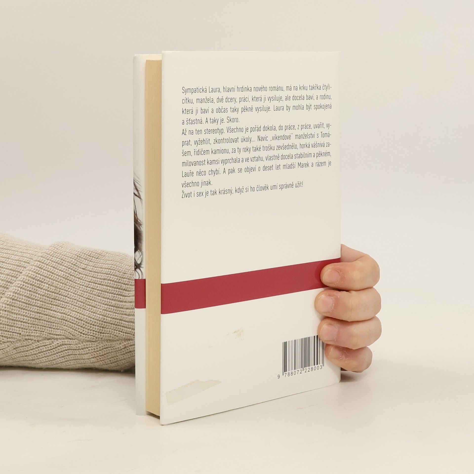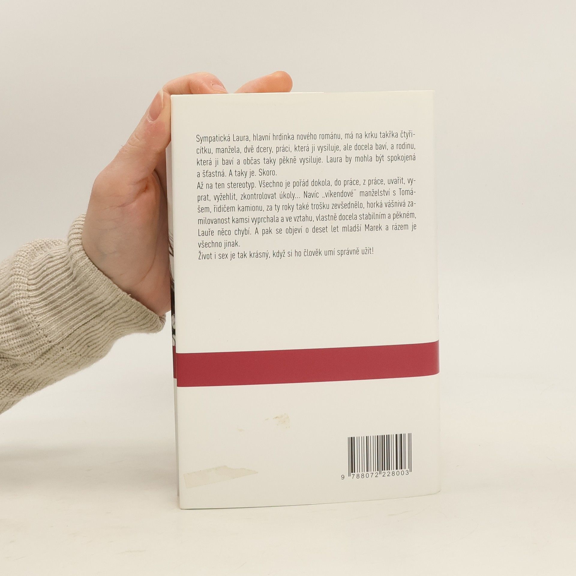 Sympatická Laura, hlavní hrdinka nového románu, má na krku takřka čtyřicítku, manžela, dvě dcery, práci, která ji vysiluje, ale docela baví, a rodinu, která ji baví a občas taky pěkně vysiluje. Laura by mohla být spokojená a šťastná. A taky je. Skoro. Až na ten stereotyp. Všechno je pořád dokola, do práce, z práce, uvařit, vyprat, vyžehlit, zkontrolovat úkoly... Navíc „víkendové“ manželství s Tomášem, řidičem kamionu, za ty roky také trošku zevšednělo, horká vášnivá zamilovanost kamsi vyprchala a ve vztahu, vlastně docela stabilním a pěkném, Lauře něco chybí. A pak se objeví o deset let mladší Marek a rázem je všechno jinak. Život i sex je tak krásný, když si ho člověk umí správně užít!