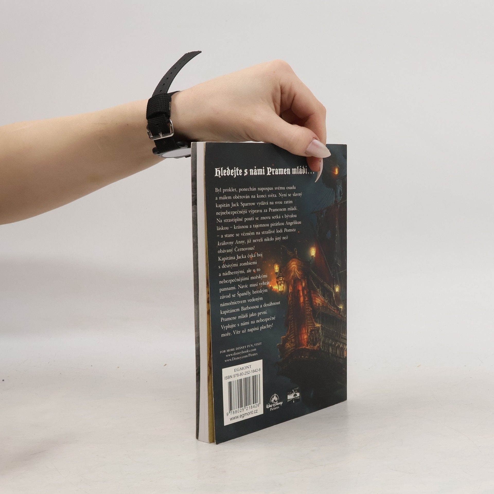 Podle filmu Roba Marshalla napsal James Ponti. Byl proklet, ponechán napospas svému osudu a málem obětován na konci světa. Nyní se slavný kapitán Jack Sparrow vydává na svou zatím nejnebezpečnější výpravu za Pramenem mládí. Na strastiplné pouti se znovu setká s bývalou láskou – krásnou a tajemnou pirátkou Angelikou – a stane se vězněm na strašlivé lodi Pomsta královny Anny, jíž nevelí nikdo jiný než obávaný Černovous! Kapitána Jacka čeká boj s děsivými zombiemi a nádhernými, ale o to nebezpečnějšími mořskými pannami. Navíc musí vyhrát závod se Španěly, Angličany a zrádným kapitánem Barbossou a dosáhnout Pramene mládí jako první. Vyplujte s námi na nebezpečné moře. Vítr už napíná plachty!