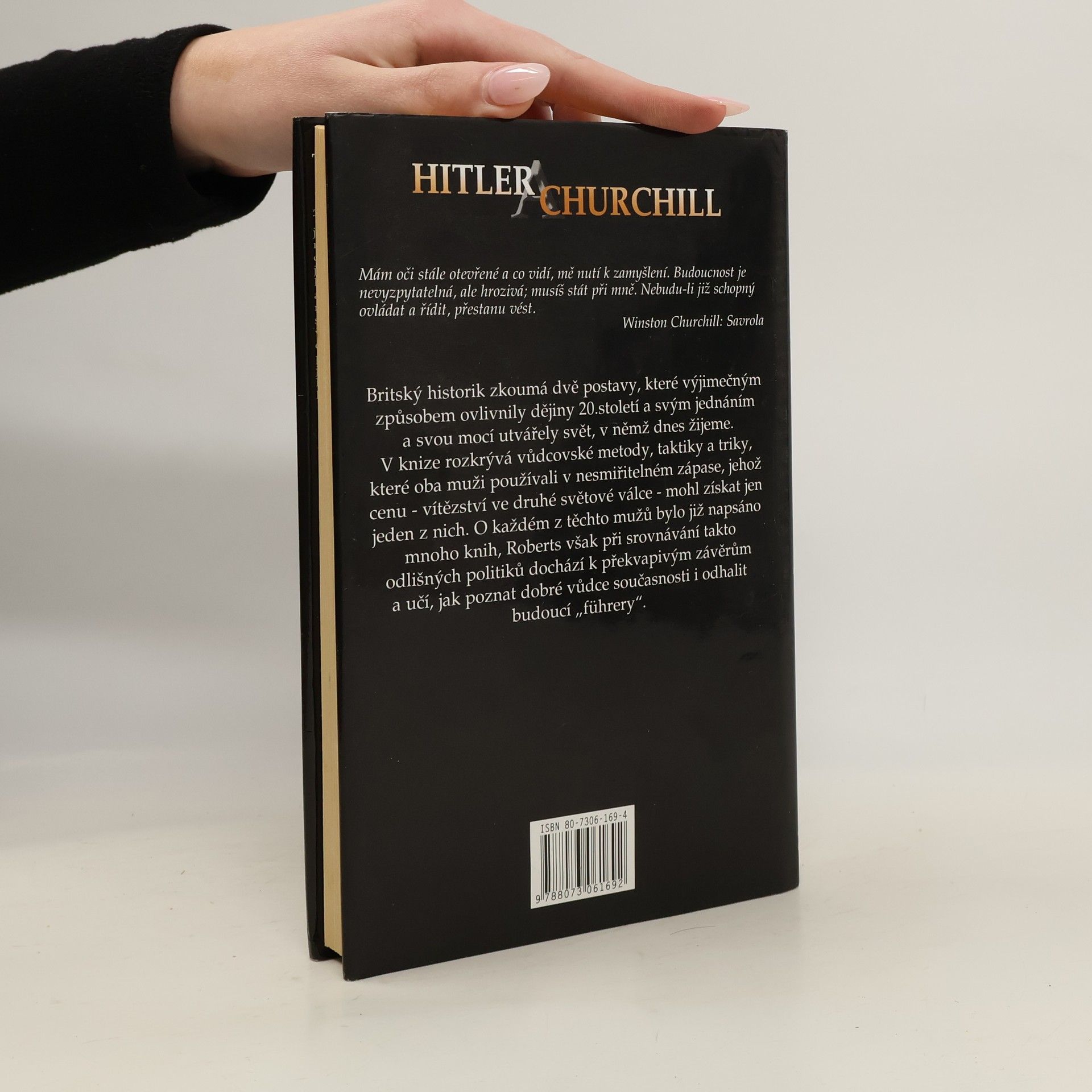 Britský historik konfrontuje politickou aktivitu dvou nesmiřitelných odpůrců - Hitlera a Churchilla. Interpretace politických metod, taktiky i triků, přesně řečeno vůdčích schopností, dvou klíčových politických činitelů minulého století. Autor dochází k závěru, že na psychiku a představivost lidí měl Hitler daleko silnější vliv než Churchill, neboť dokázal velice rafinovaně využívat negativní lidské emoce, zášť a závist, což mu umožnilo politický úspěch. Kalkulace s negativními lidskými emocemi však nikdy nebyla součástí Churchillovy politické aktivity... Srovnání principů politické aktivity u obou politiků.