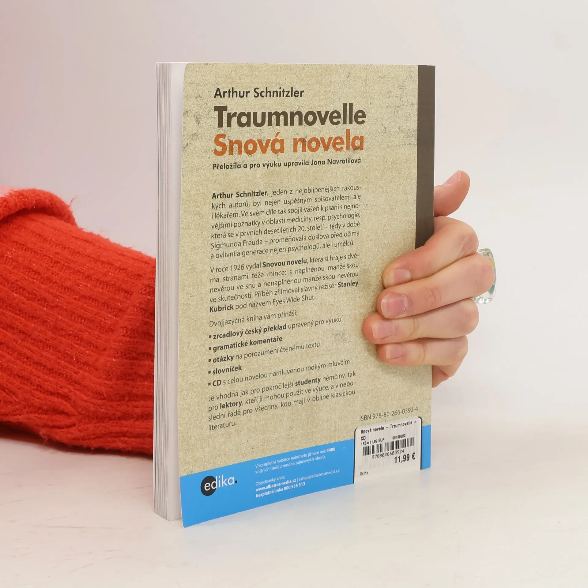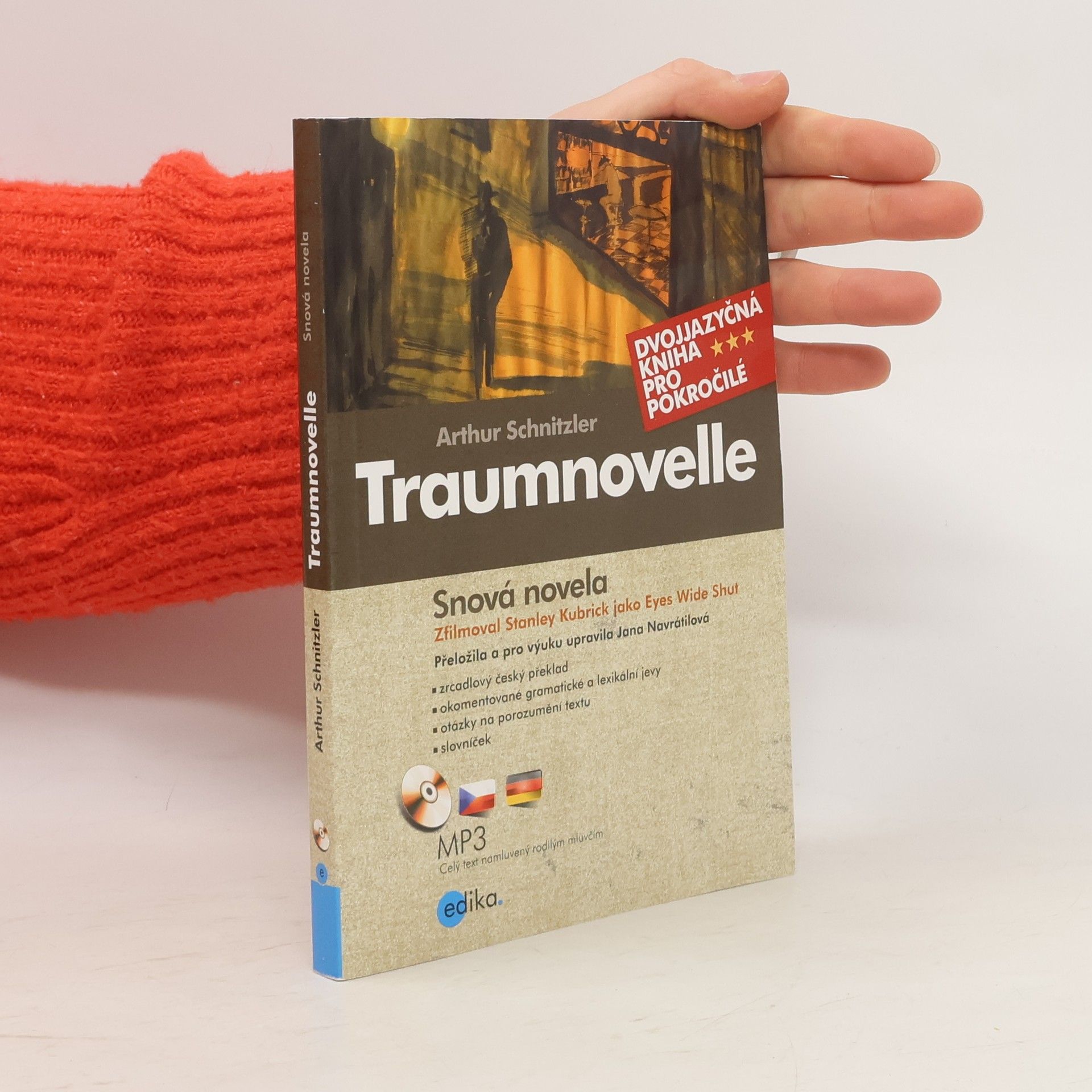 Arthur Schnitzler, jeden z nejoblíbenějších rakouských autorů, byl nejen úspěšným spisovatelem, ale i lékařem. Ve svém díle tak spojil vášeň ke psaní s nejnovějšími poznatky v oblasti medicíny, resp. psychologie, která se v prvních desetiletích 20. století – tedy v době Sigmunda Freuda – proměňovala doslova před očima a ovlivnila generace nejen psychologů, ale i umělců. V roce 1926 vydává Schnitzler Snovou novelu (Traumnovelle), která si hraje se dvěma stranami téže mince: naplněná manželská nevěra ve snu a nenaplněná manželská nevěra ve skutečnosti. Příběh byl zfilmován slavným režisérem Stanleym Kubrickem pod názvem Eyes wide shut. Dvojjazyčná kniha přináší nejen zrcadlový český překlad upravený pro výuku, ale také jazykové a gramatické komentáře, otázky na porozumění čtenému, slovníček a CD s celou novelou namluvenou rodilým mluvčím.