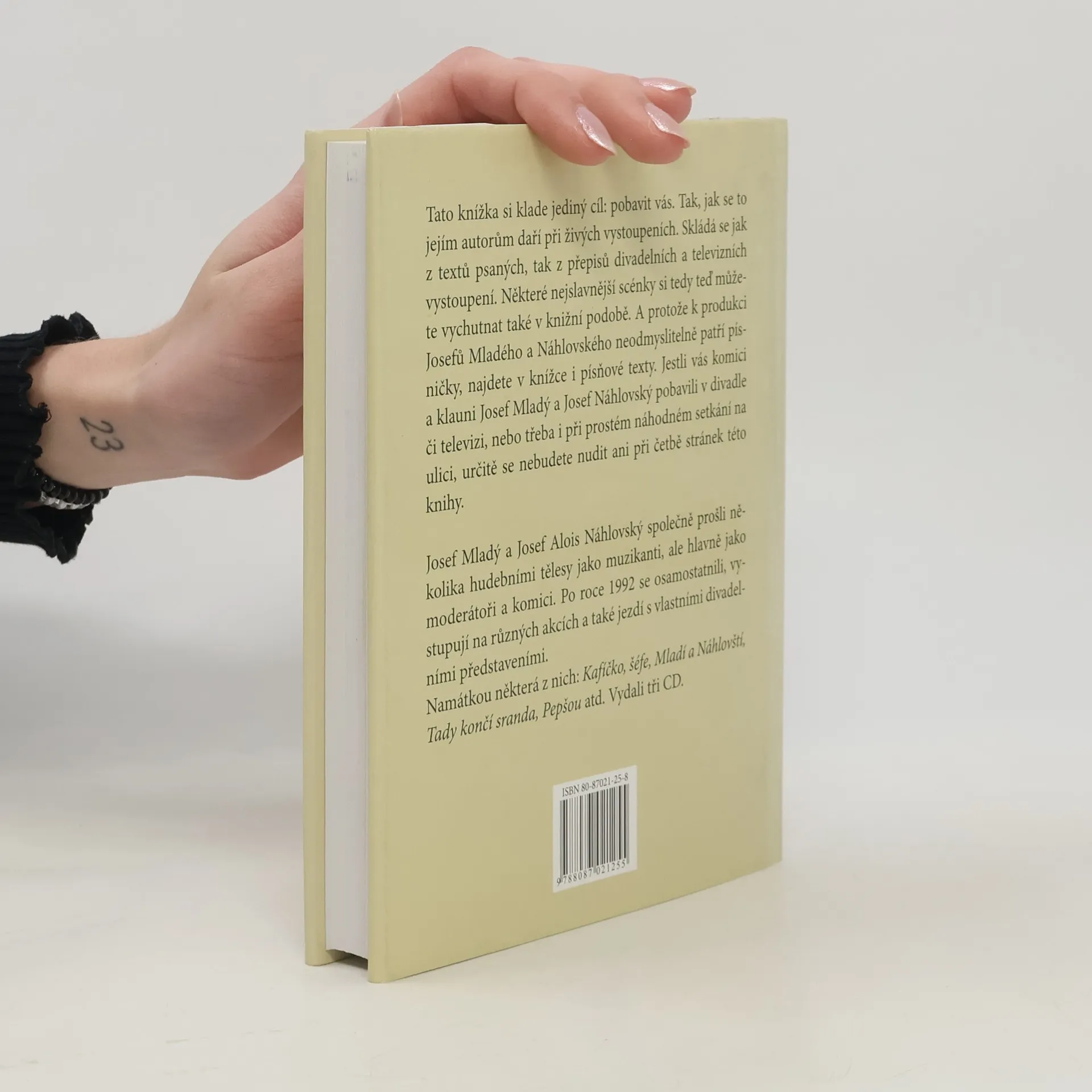 Tato knížka si klade jediný cíl: pobavit vás. Tak, jak se to jejím autorům daří při živých vystoupeních. Skládá se jak z textů psaných, tak z přepisů divadelních a televizních vystoupení. Některé nejslavnější scénky si tedy teď můžete vychutnat také v knižní podobě. A protože k produkci Josefů Mladého a Náhlovského nedomyslitelně patří písničky, najdete v knížce i písňové texty. Jestli vás komici a klauni Josef Mladý a Josef Náhlovský pobavili v divadle či televizi, nebo třeba i při prostém náhodném setkání na ulici, určitě se nebudete nudit ani při četbě stránek této knihy. Josef Mladý a Josef Alois Náhlovský společně prošli několika hudebními tělesy jako muzikanti, ale hlavně jako moderátoři a komici. Po roce 1992 se osamostatnili, vystupují na různých akcích a také jezdí s vlastními divadelními představeními. Namátkou některá z nich: Kafíčko, šéfe; Mladí a Náhlovští; Tady končí sranda; Pepšou atd.