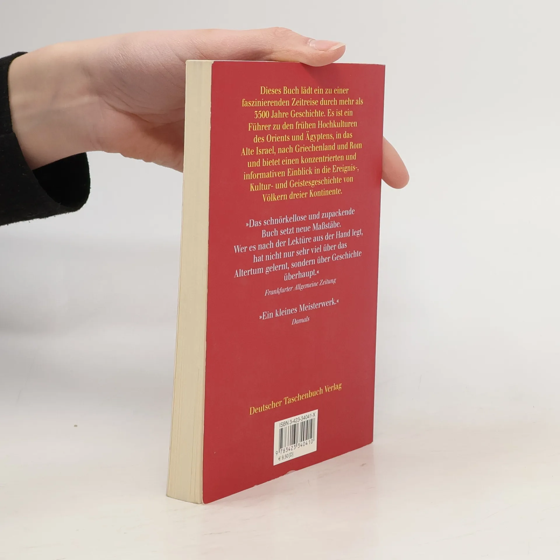 Eine Zeitreise durch 3500 Jahre Geschichte Hans Joachim Gehrke führt den Leser durch alle Epochen und geographischen Räume der Antike von den Anfängen der Hochkulturen im Alten Orient und in Ägypten nach Israel, über die Ägäis und Griechenland nach Karthago und in das römische Weltreich. Knapp und klar schildert er die historischen Ereignisse und erläutert anschaulich die Entwicklung in Literatur, Kunst, Religion und Philosophie. Den antiken Wurzeln politischer Strukturen wie Monarchie und Demokratie wird ebenso viel Aufmerksamkeit zuteil wie sozialen Phänomenen, etwa der Sklaverei, und bedeutenden Persönlichkeiten. Ein auf das Wesentliche konzentrierter, informativer Überblick über die Geschichte und Kultur der Antike.