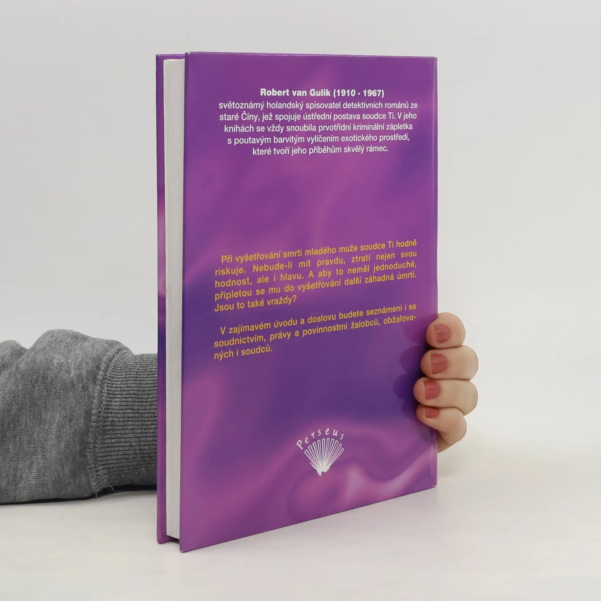 Při vyšetřování smrti mladého muže soudce Ti hodně riskuje. Nebude-li mít pravdu, ztratí nejen svou hodnost, ale i hlavu. A aby to neměl jednoduché, připletou se mu do vyšetřování další záhadná úmrtí. Jsou to také vraždy? Slavné případy soudce Ti je anotovaný překlad knihy napsané v osmnáctém století. Překladatel byl Robert van Gulik a originál byl tištěný v Tokiu. Později van Gulik navázal dalšími, tentokrát již svými příběhy se soudcem Ti.