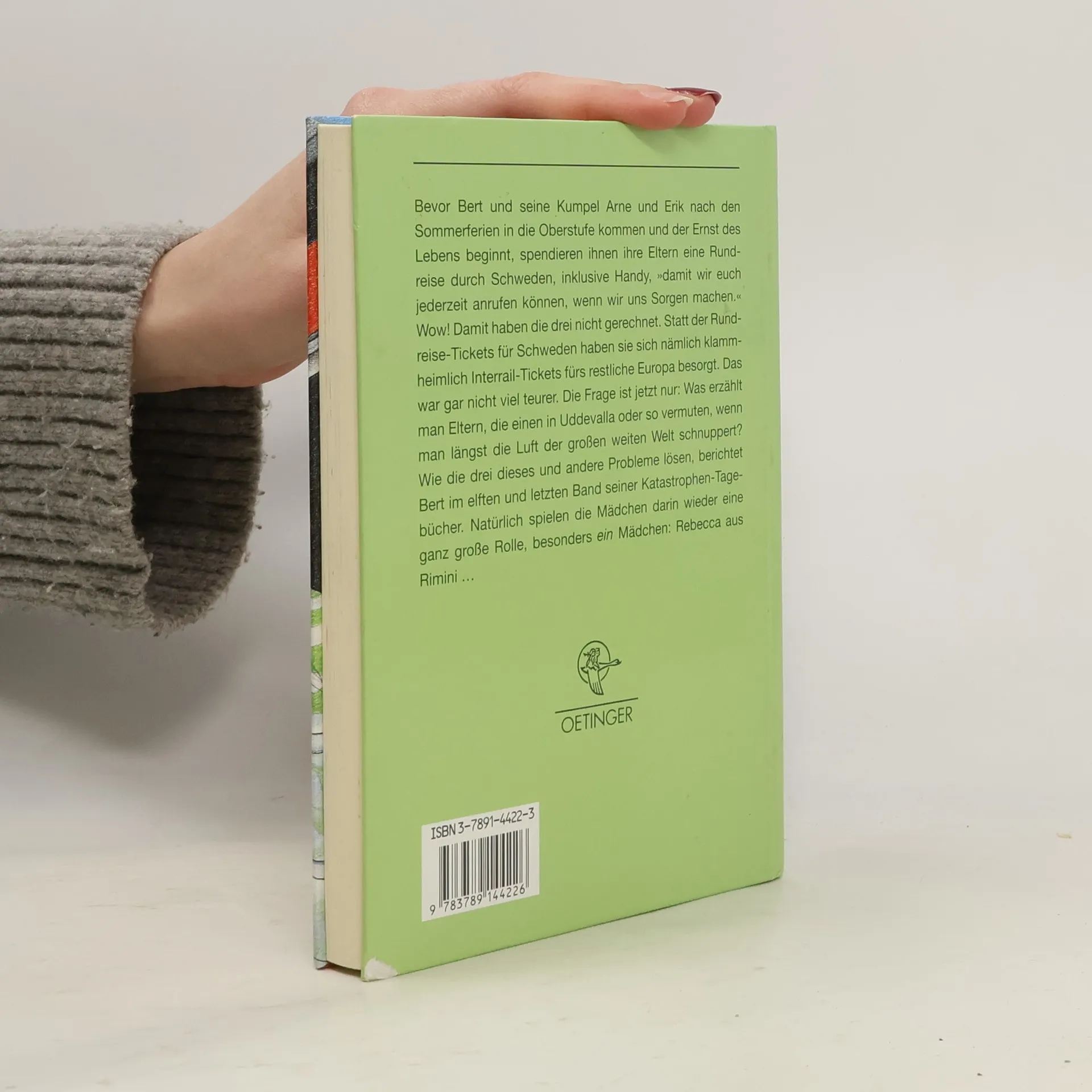 Im letzten Band von Berts Katastrophen, der diesmal in der großen weiten Welt spielt, stehen die Mädchen, besonders Rebecca aus Rimini, im Mittelpunkt. Vor dem Übergang zur Oberstufe überraschen Berts Eltern ihn, Arne und Erik mit einer Rundreise durch Schweden und einem Handy für Notfälle. Doch die drei haben heimlich Interrail-Tickets für Europa besorgt, was die Frage aufwirft, wie sie ihren Eltern erklären, dass sie nicht in Uddevalla, sondern in der weiten Welt unterwegs sind. Bert erzählt, wie sie diese und andere Herausforderungen meistern. Rebecca, die reife siebzehn Jahre alt ist, zieht Berts Aufmerksamkeit auf sich. Arne hält sie für eine von vielen, in die Bert sich verliebt, doch Bert empfindet tatsächlich mehr für sie als je zuvor. Gleichzeitig gibt es Patricia, mit der er fast verlobt ist, was die Situation kompliziert macht. Berts Gefühlschaos und die Herausforderungen des Erwachsenwerdens stehen im Mittelpunkt dieser letzten Episode seiner Katastrophen-Tagebücher.