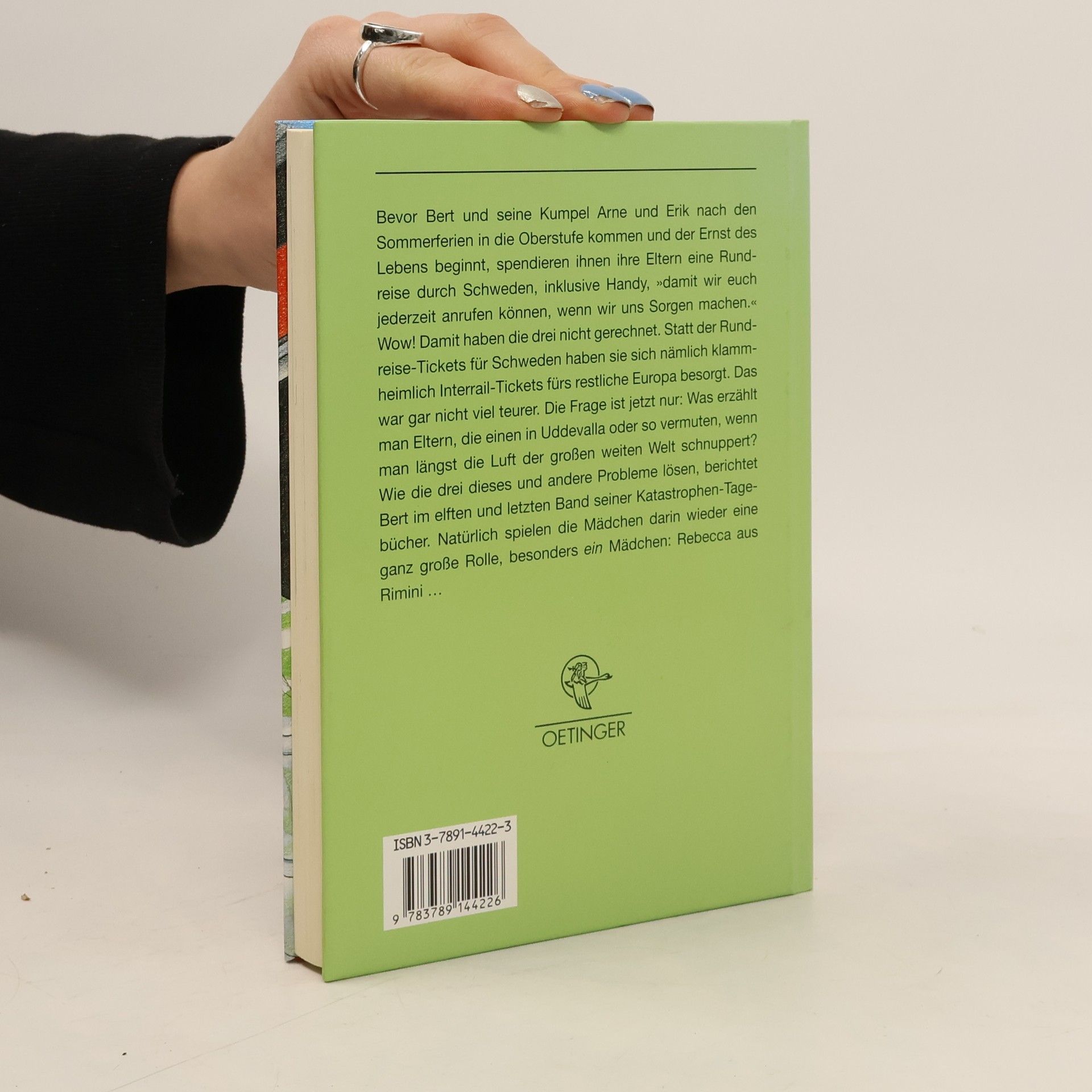 Im letzten Band von Berts Katastrophen, der diesmal in der großen weiten Welt spielt, stehen die Mädchen, besonders Rebecca aus Rimini, im Mittelpunkt. Vor dem Übergang zur Oberstufe überraschen Berts Eltern ihn, Arne und Erik mit einer Rundreise durch Schweden und einem Handy für Notfälle. Doch die drei haben heimlich Interrail-Tickets für Europa besorgt, was die Frage aufwirft, wie sie ihren Eltern erklären, dass sie nicht in Uddevalla, sondern in der weiten Welt unterwegs sind. Bert erzählt, wie sie diese und andere Herausforderungen meistern. Rebecca, die reife siebzehn Jahre alt ist, zieht Berts Aufmerksamkeit auf sich. Arne hält sie für eine von vielen, in die Bert sich verliebt, doch Bert empfindet tatsächlich mehr für sie als je zuvor. Gleichzeitig gibt es Patricia, mit der er fast verlobt ist, was die Situation kompliziert macht. Berts Gefühlschaos und die Herausforderungen des Erwachsenwerdens stehen im Mittelpunkt dieser letzten Episode seiner Katastrophen-Tagebücher.