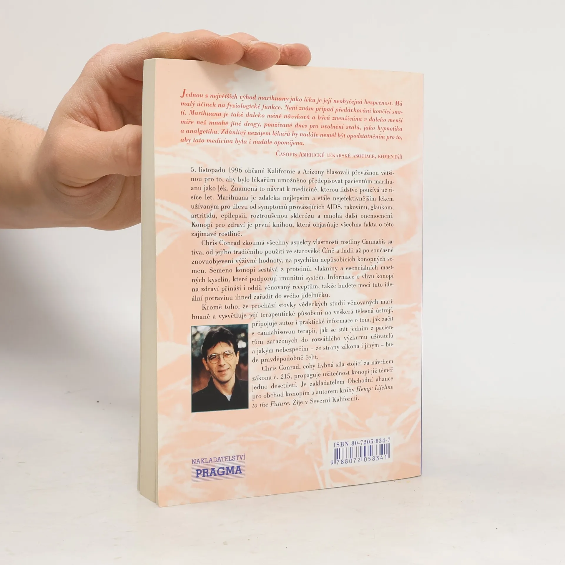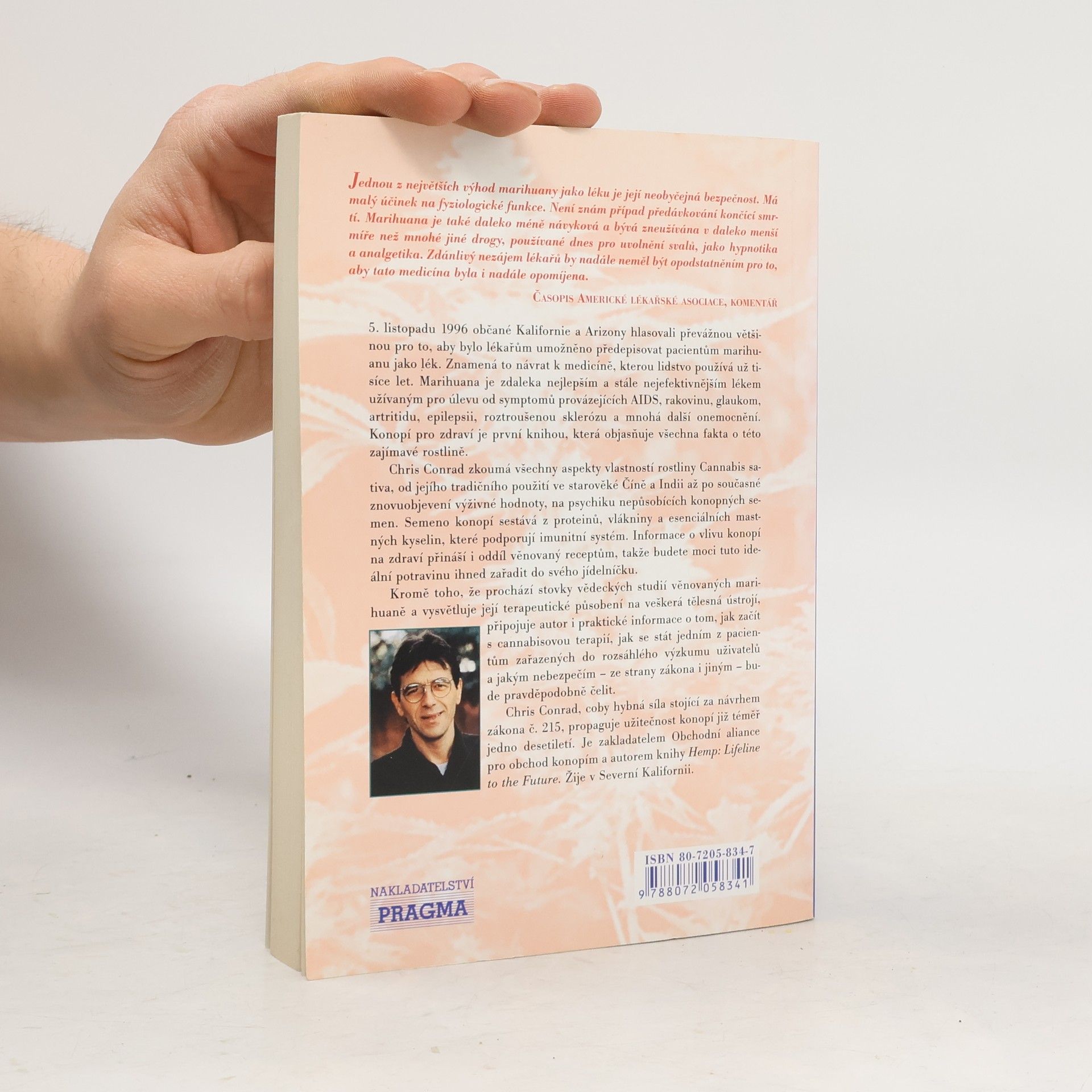 Fakta o léčivých účincích marihuany. Marihuana je zdaleka nejlepší a stále nejefektivnějším lékem užívaným pro úlevu od symptomů provázejících AIDS, rakovinu, glaukom, artritidu, epilepsii, roztroušenou sklerózu a mnohá další onemocnění. Konopí pro zdraví je první knihou, která objasňuje všechna fakta o této zajímavé rostlině. Chris Conrad zkoumá všechny aspekty vlastností rostliny Cannabis sativa, od jejího tradičního použití ve starověké Číně a Indii až po současné znovuobjevení výživné hodnoty, na psychiku nepůsobících konopných semen. Semeno konopí sestává z proteinů, vlákniny a esenciálních mastných kyselin, které podporují imunitní systém. Informace o vlivu konopí na zdraví přináší i oddíl věnovaný receptům, takže budete moci tuto ideální potravinu ihned zařadit do svého jídelníčku. Kromě toho, že prochází stovky vědeckých studií věnovaných marihuaně a vysvětluje její terapeutické působení na veškerá tělesná ústrojí, připojuje autor i praktické informace o tom, jak začít s cannabisovou terapií, jak se stát jedním z pacientů zařazených do rozsáhlého výzkumu uživatelů a jakým nebezpečím - ze strany zákona i jiným - budete pravděpodobně čelit.