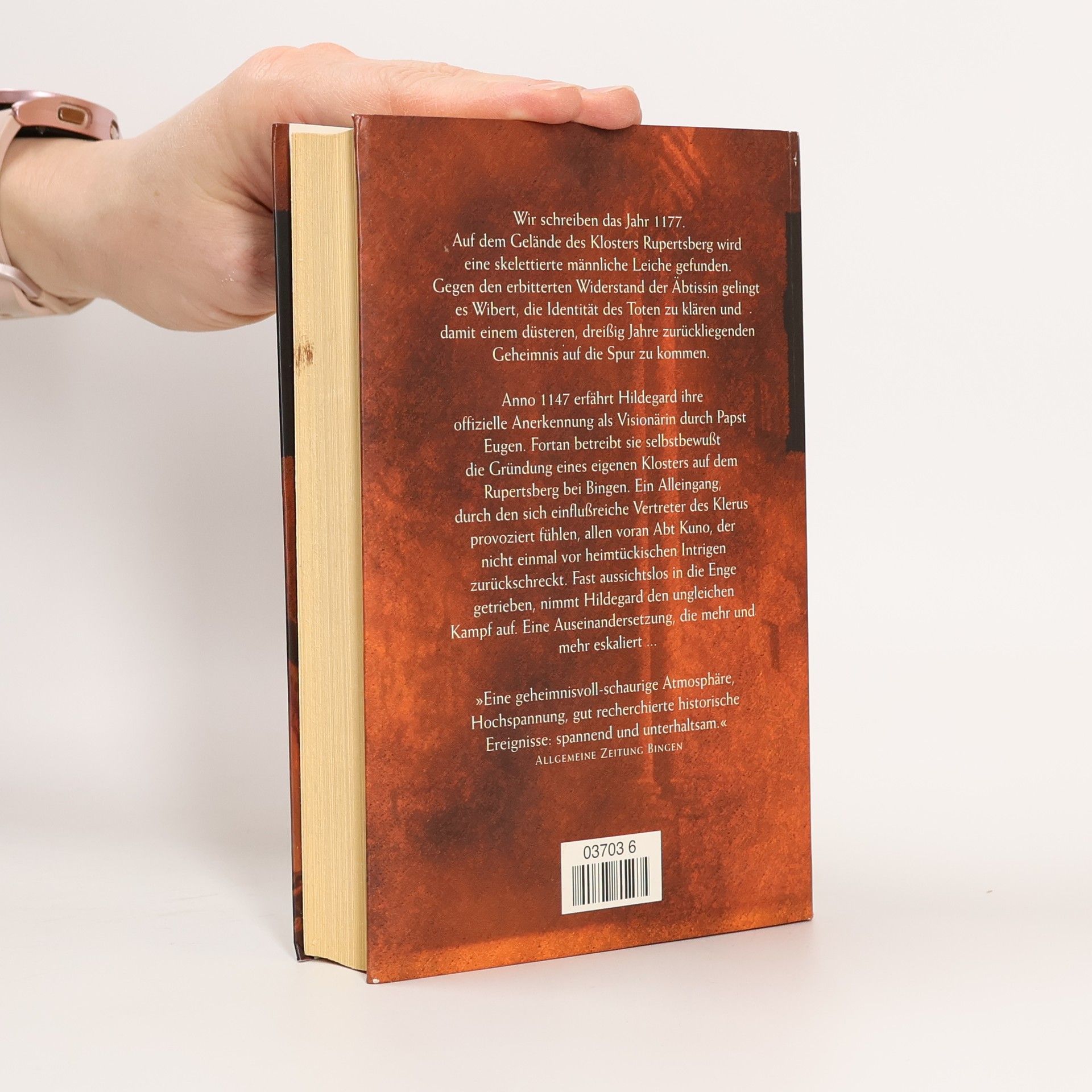 Im Jahr 1177 wird auf dem Gelände des Klosters Rupertsberg eine skelettierte männliche Leiche gefunden. Gegen den erbitterten Widerstand der Äbtissin gelingt es Wibert, die Identität des Toten zu klären und damit einem düsteren, dreißig Jahre zurückliegenden Geheimnis auf die Spur zu kommen. Anno 1147 erfährt Hildegard ihre offizielle Anerkennung als Visionärin durch Papst Eugen. Fortan betreibt sie selbstbewußt ihre Loslösung vom Disibodenberg, um ihr eigenes Kloster auf dem Rupertsberg bei Bingen zu gründen. Eine Abnabelung, durch die sich einflußreiche Vertreter des Klerus provoziert fühlen, allen voran Abt Kuno, der nicht einmal vor den heimtückischsten Intrigen zurückschreckt. Fast aussichtslos in die Enge getrieben, nimmt Hildegard den ungleichen Kampf auf. Eine Auseinandersetzung, die mehr und mehr eskaliert. Als alles vorbei ist, sind selbst die Sieger Verlierer.