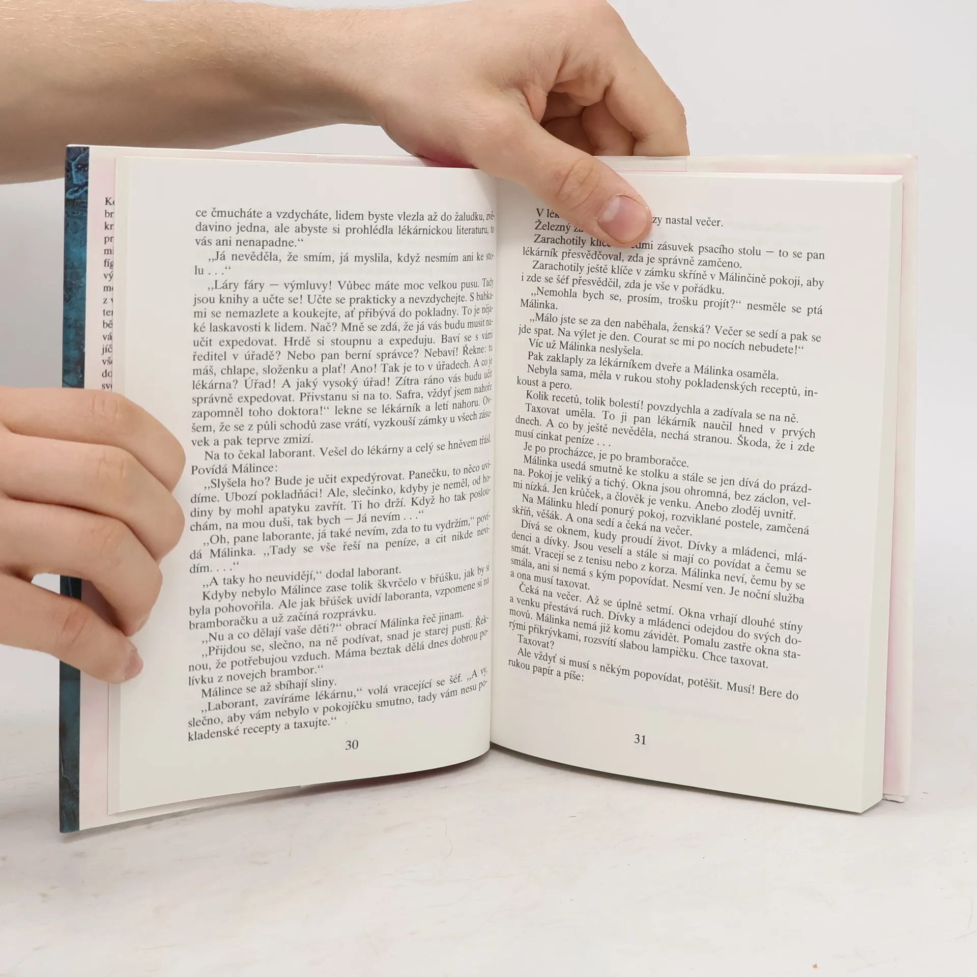 Pokračování kroniky dívčího života Gabry a Málinky vypravuje o tom, jak se Málinka učí být lékárnicí. Autorka seznamuje s poměry v lékárnách za první republiky, kdy lékárník mohl být skutečný tyran. Jde o půvabné a naivní vyprávění, kde nechybí milostná zápletka.