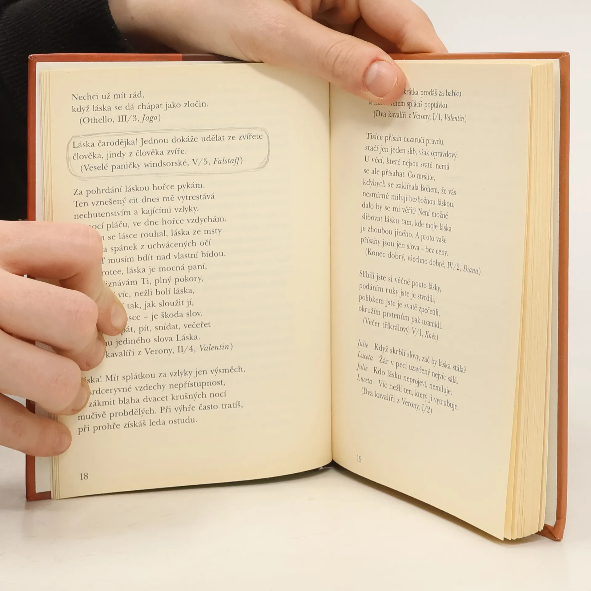 Kniha citátů z díla největšího světového dramatika, jehož hry, ať už tragédie nebo komedie, se stále objevují v repertoáru mnoha divadel celého světa a setkávají se s nadšeným přijetím diváků i čtenářů. Shakespearovy aforismy vybrané do této knihy zachycují jenom zlomek z jeho rozsáhlé tvorby, přesto pro čtenáře budou jistě podnětem k zamyšlení i úsměvu. Z českých překladů vybrala a uspořádala Eva Loubová.