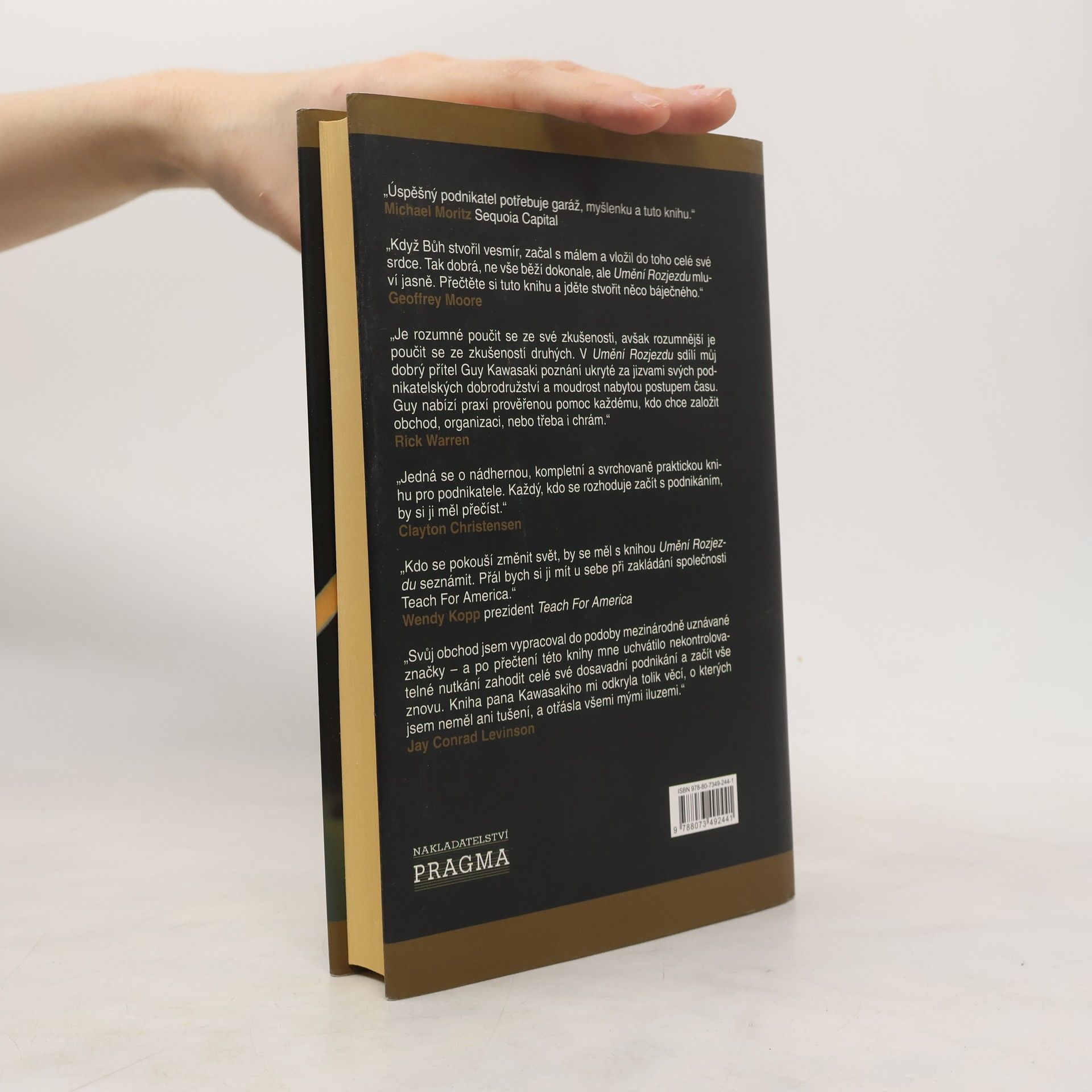 Autor v knize nabízí časem i úspěchy prověřený systém, který vám pomůže v začátcích podnikání. Text je srozumitelný a zaměřuje se na to podstatné. Kawasaki se poučil z vlastních vítězství i proher, a poskytuje praktické rady všem, kteří mají v plánu odstartovat svůj malý byznys, nebo se snaží dostat na trh nové produkty a služby, nebo třeba také založit a vést neziskovou organizaci. Podstata podnikání spočívá v činnost, a nikoli v učení se tomu, jak na to. Umění rozjezdu má ambice tuto potíž odstranit. Autor pomůže čtenářům využít jejich znalosti, nadšení a energii k vytvoření něčeho úžasného, aniž by se utopili v oceánu teorií a zbytečných detailů. Ve skutečnosti není "podnikatel" žádnou pracovní pozicí. Je to stav mysli lidí, kteří chtějí změnit budoucnost.