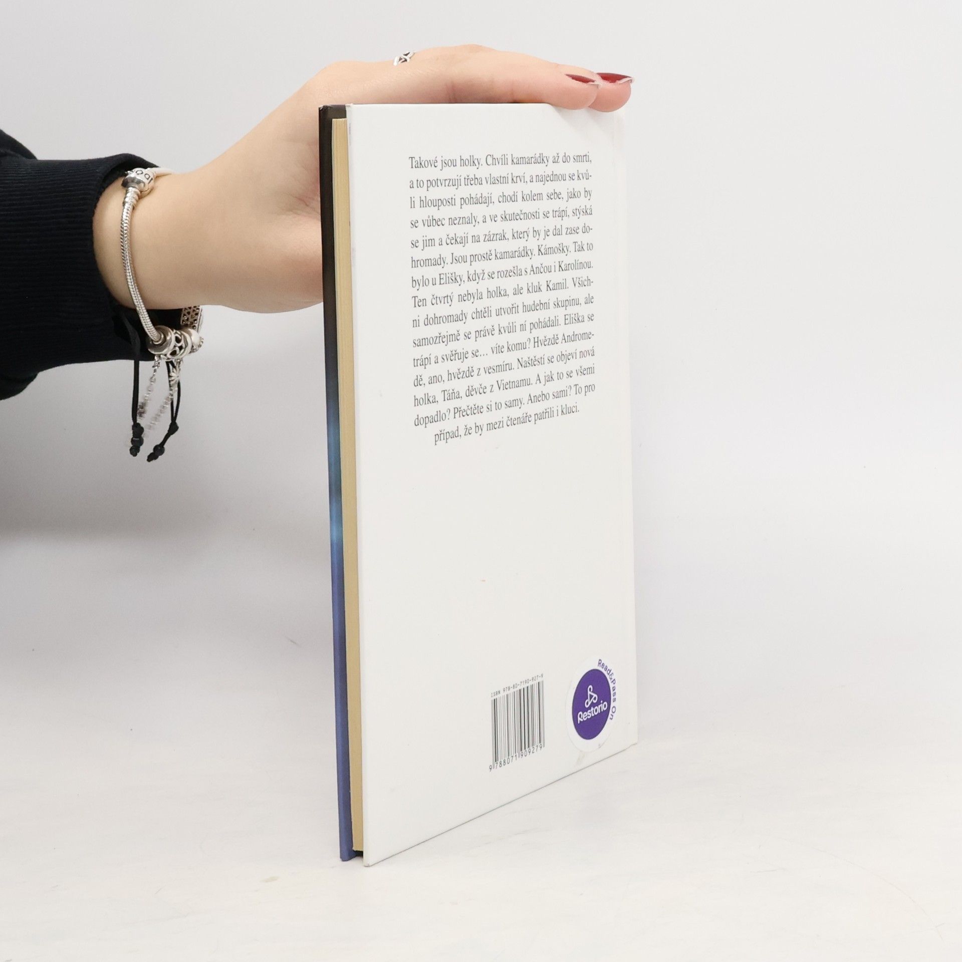 Takové jsou holky. Chvíli kamarádky až do smrti, a to potvrzují třeba vlastní krví, a najednou kvůli hlouposti se pohádají, chodí kolem sebe, jako by se vůbec neznaly, a ve skutečnosti se trápí, stýská se jim a čekají na zázrak, který by je dal zase dohromady. Jsou prostě kamarádky. Kámošky. Tak to bylo u Elišky, když se rozešla s Ančou i Karolínou. Ten čtvrtý nebyla holka, ale kluk Kamil. Všichni dohromady chtěli utvořit hudební skupinu, ale samozřejmě se právě kvůli ní pohádali. Eliška se trápí a svěřuje se .víte komu? Hvězdě Andromedě, ano, hvězdě z vesmíru. Naštěstí se objeví nová holka, Táňa, děvče z Vietnamu. A jak to se všemi dopadlo? Přečtěte si to samy.Anebo sami? To pro případ, že by mezi čtenáře patřili i kluci. --------------------------------------------------------------------------------