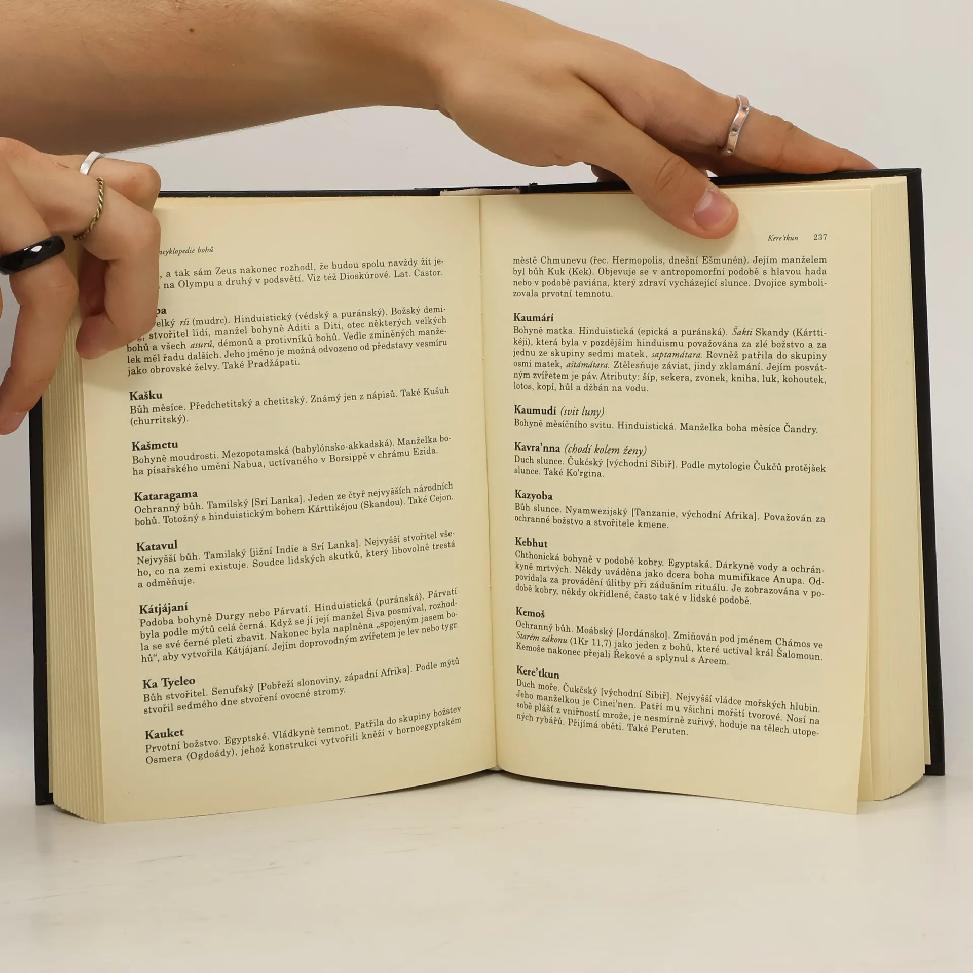 Výkladový slovník jmen antických, keltských, aztéckých, čínských, japonských, indických a slovanských božstev. U některých bohů jsou uvedeny i literární prameny, umělecké zobrazení, místo a období uctívání. Kniha je doplněna seznamem použité literatury, který česká redakce slovníku rozšířila o odkazy na české knihy.