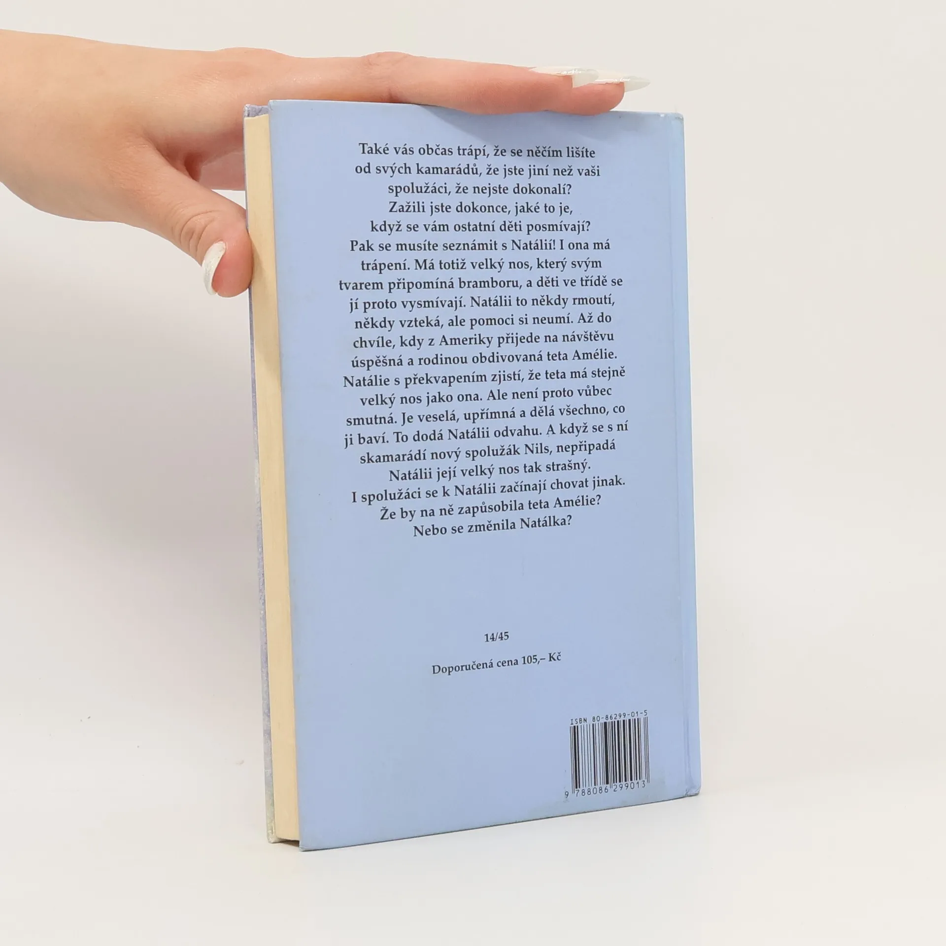 Také vás občas trápí, že se něčím lišíte od svých kamarádů, že jste jiní než vaši spolužáci, že nejste dokonalí? Zažili jste dokonce, jaké to je, když se vám ostatní děti posmívají? Pak se musíte seznámit s Natálií! I ona má trápení. Má totiž velký nos, který svým tvarem připomíná bramboru, a děti ve třídě se jí proto vysmívají. Natálii to někdy rmoutí, někdy vzteká, ale pomoci si neumí. Až do chvíle, kdy z Ameriky přijede na návštěvu úspěšná a rodinou obdivovaná teta Amélie. Natálie s překvapením zjistí, že teta má stejně velký nos jako ona. Ale není proto vůbec smutná. Je veselá, upřimná a dělá všechno, co ji baví. To dodá Natálii odvahu. A když se s ním skamarádí nový spolužák Nils, nepřipadá Natálii její velký nos tak strašný. I spolužáci se k Natálii začínají chovat jinak. Že by na ně zapůsobila teta Amélie? Nebo se změnila Natálka?