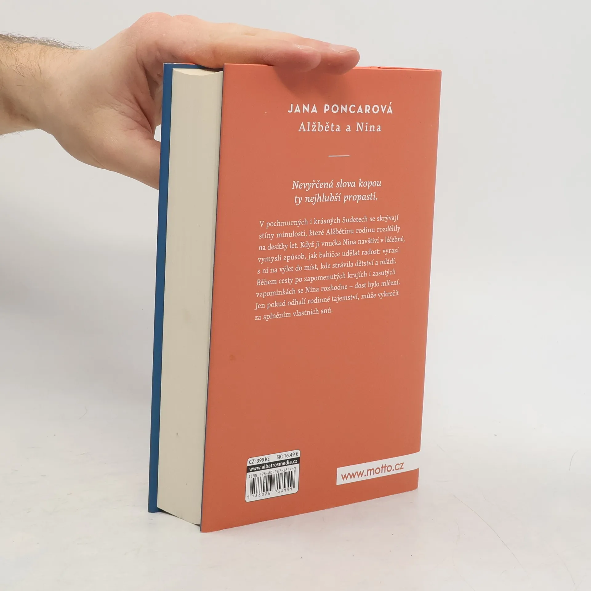 Tajemství mojí babičky. Nevyřčená slova kopou ty nejhlubší propasti. V pochmurných i krásných Sudetech se skrývají stíny minulosti, které Alžbětinu rodinu rozdělily na desítky let. Když ji vnučka Nina navštíví v léčebně, vymyslí způsob, jak babičce udělat radost: vyrazí s ní na výlet do míst, kde strávila dětství a mládí. Během cesty po zapomenutých krajích i zasutých vzpomínkách se Nina rozhodne – dost bylo mlčení. Jen pokud odhalí rodinné tajemství, může vykročit za splněním vlastních snů.