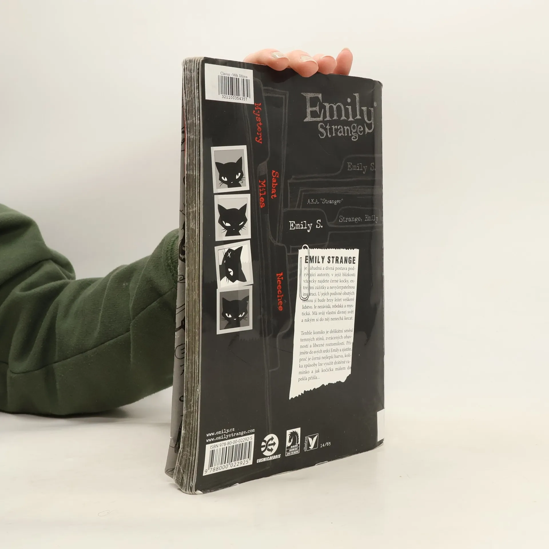 Emily Strange je záhadná a divná postava podrývající autority, v jejíž blízkosti vždycky najdete černé kočky, extrémní zážitky a nevyčerpatelnou inspiraci. U jejích podivně obutých nohou jí bude brzy ležet veškeré lidstvo. Je nezávislá, rebelská a mystická. Přijměte do svých srdcí Emily a ona vám za to nabídne nezapomenutelné zážitky. A navíc to je Emily 3x jinak a v jednom balení – ztracená, temná a znuděná!