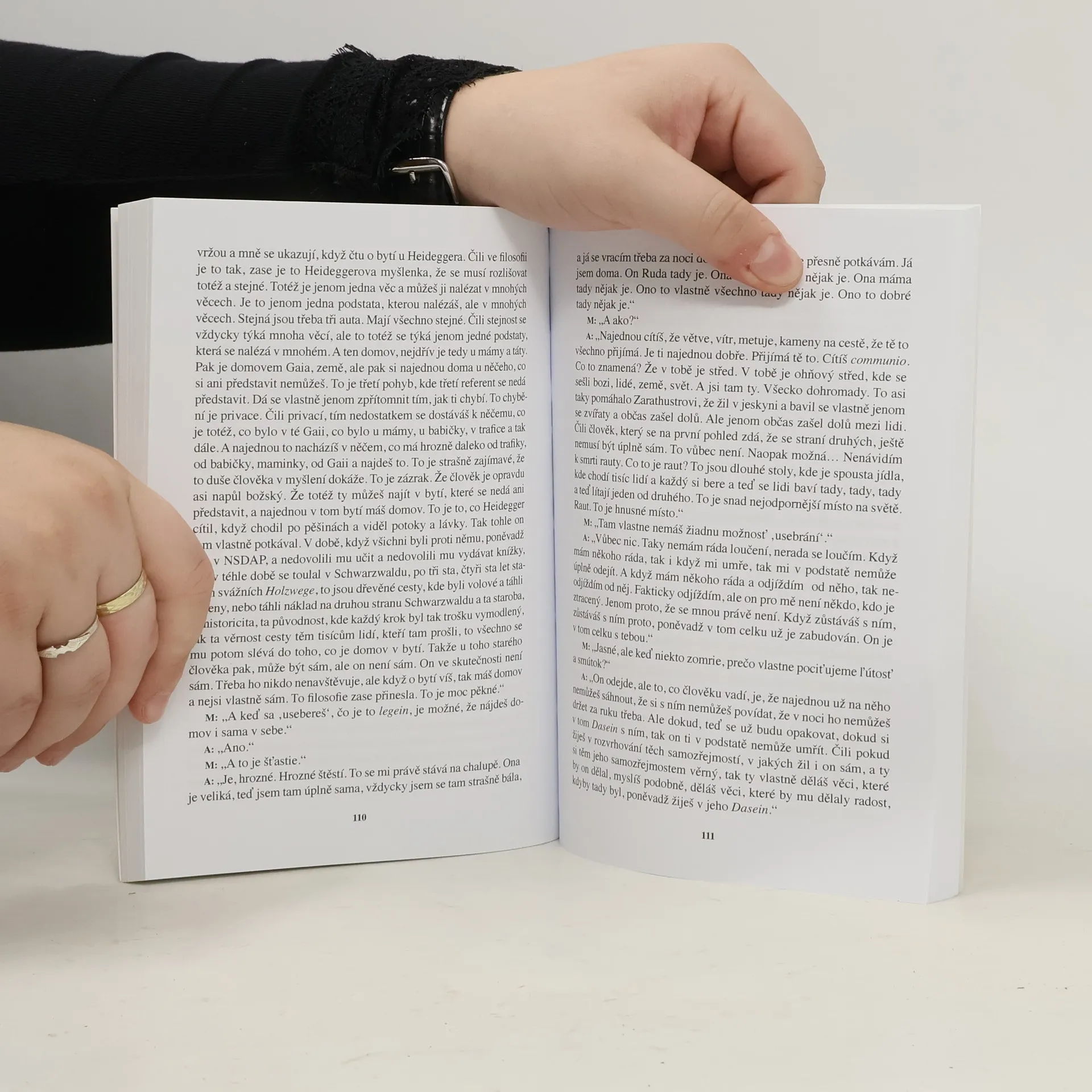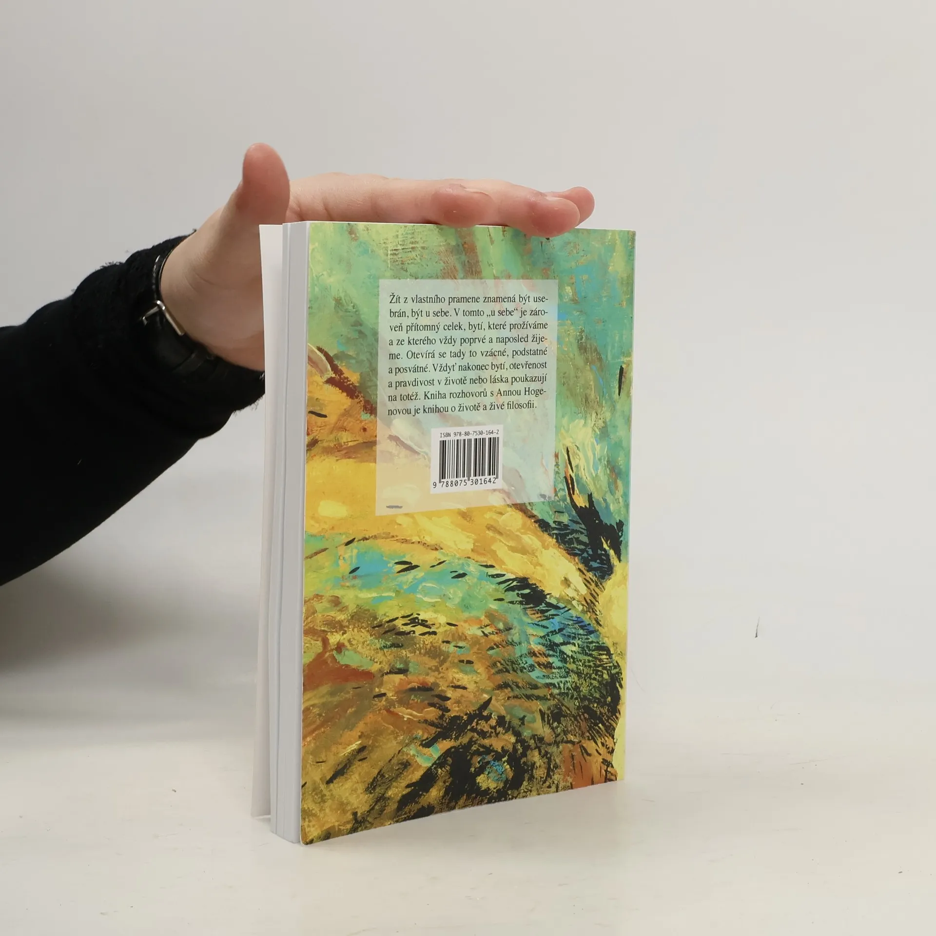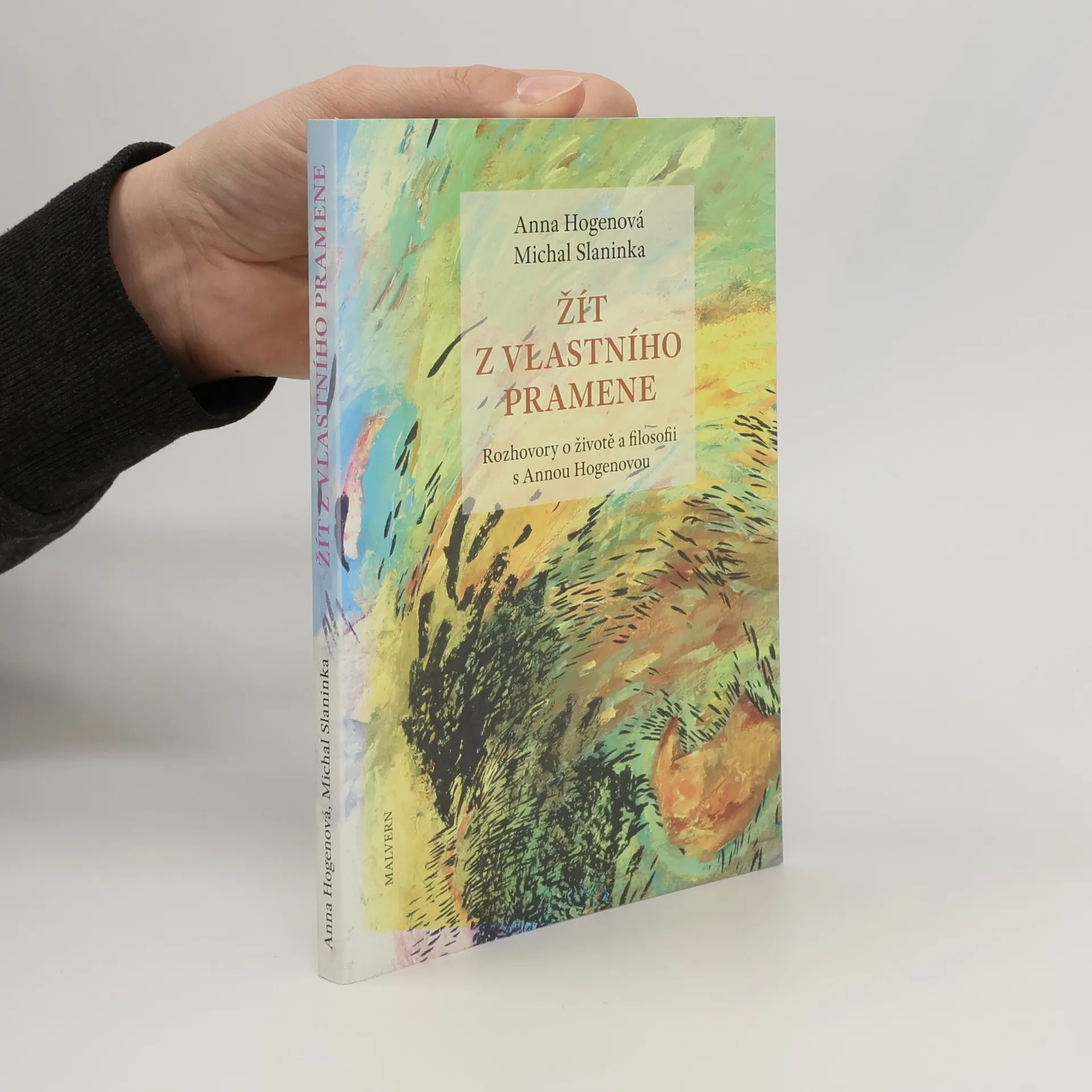 Žít z vlastního pramene znamená být usebrán, být u sebe. V tomto "u sebe" je zároveň přítomný celek, bytí, které prožíváme a ze kterého vždy poprvé a naposled žijeme. Otevírá se tady to vzácné, podstatné a posvátné. Vždyť nakonec bytí, otevřenost a pravdivost v životě nebo láska poukazují na totéž. Kniha rozhovorů s Annou Hogenovou je knihou o životě a živé filosofii, knihou o podstatném v životě.