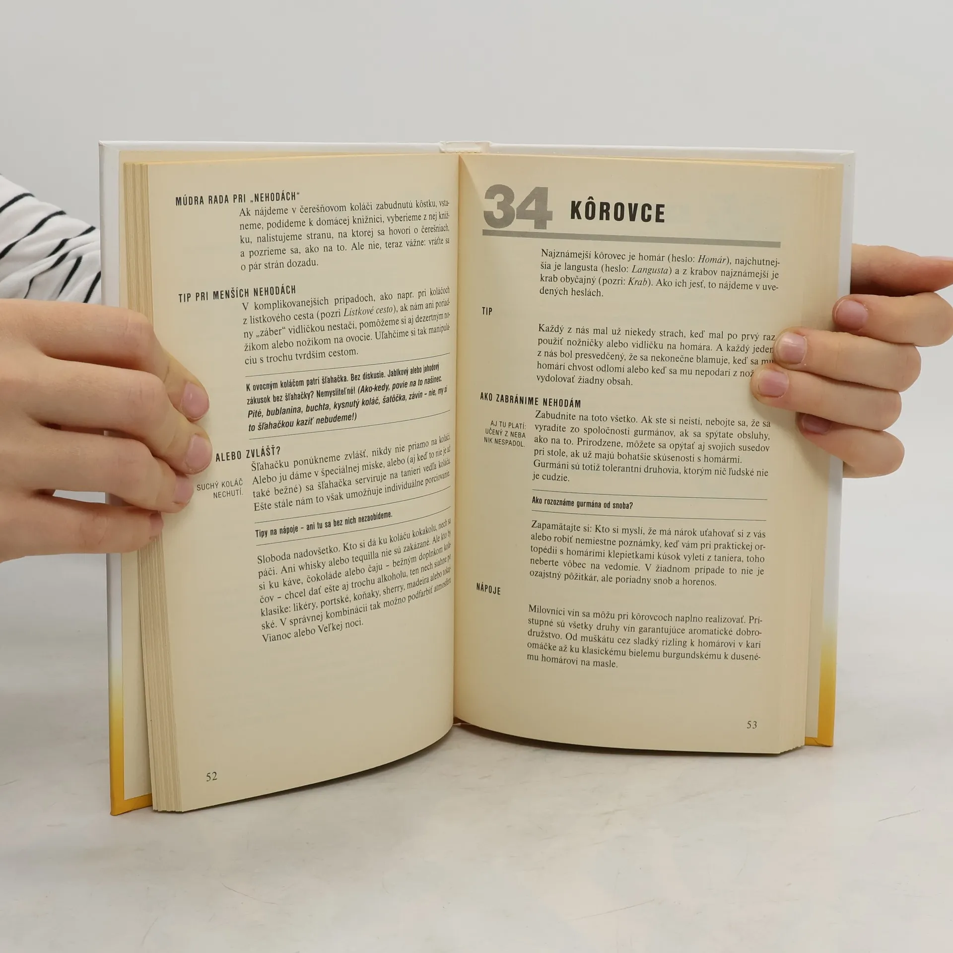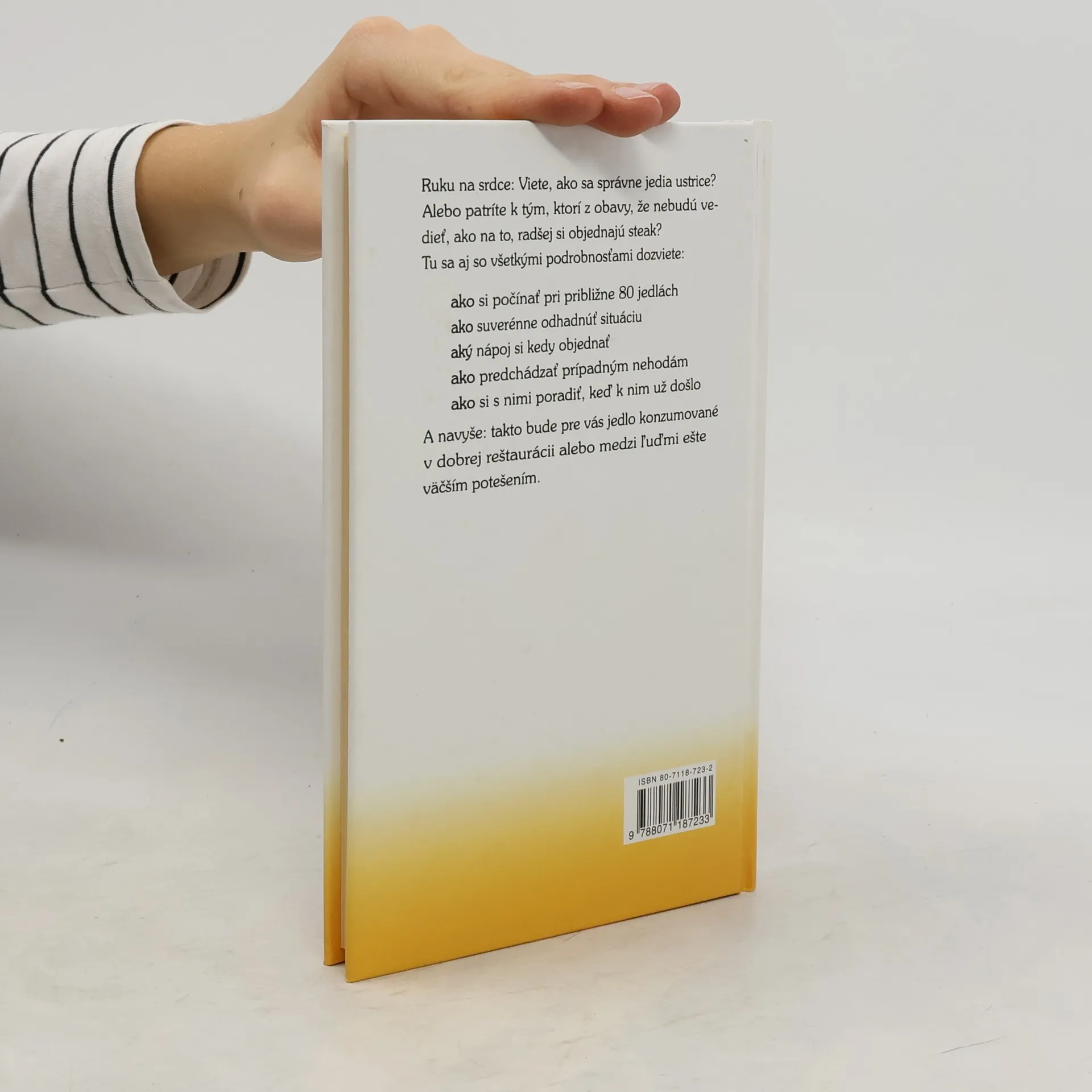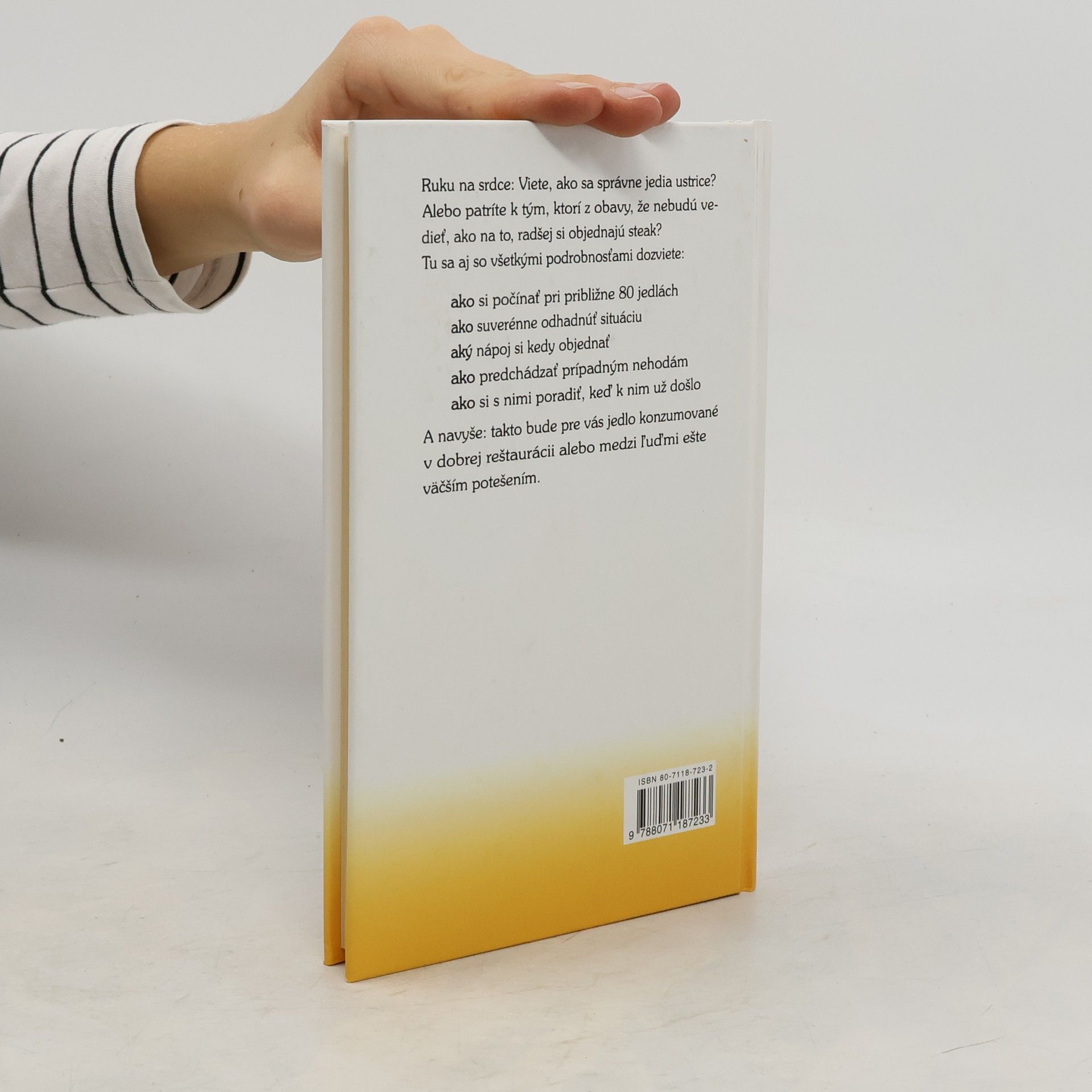 Autor poradí čitateľom, ako si počínať pri približne 80 jedlách, ako ich jesť, čo si k nim objednať, ako predchádzať nehodám, atd...