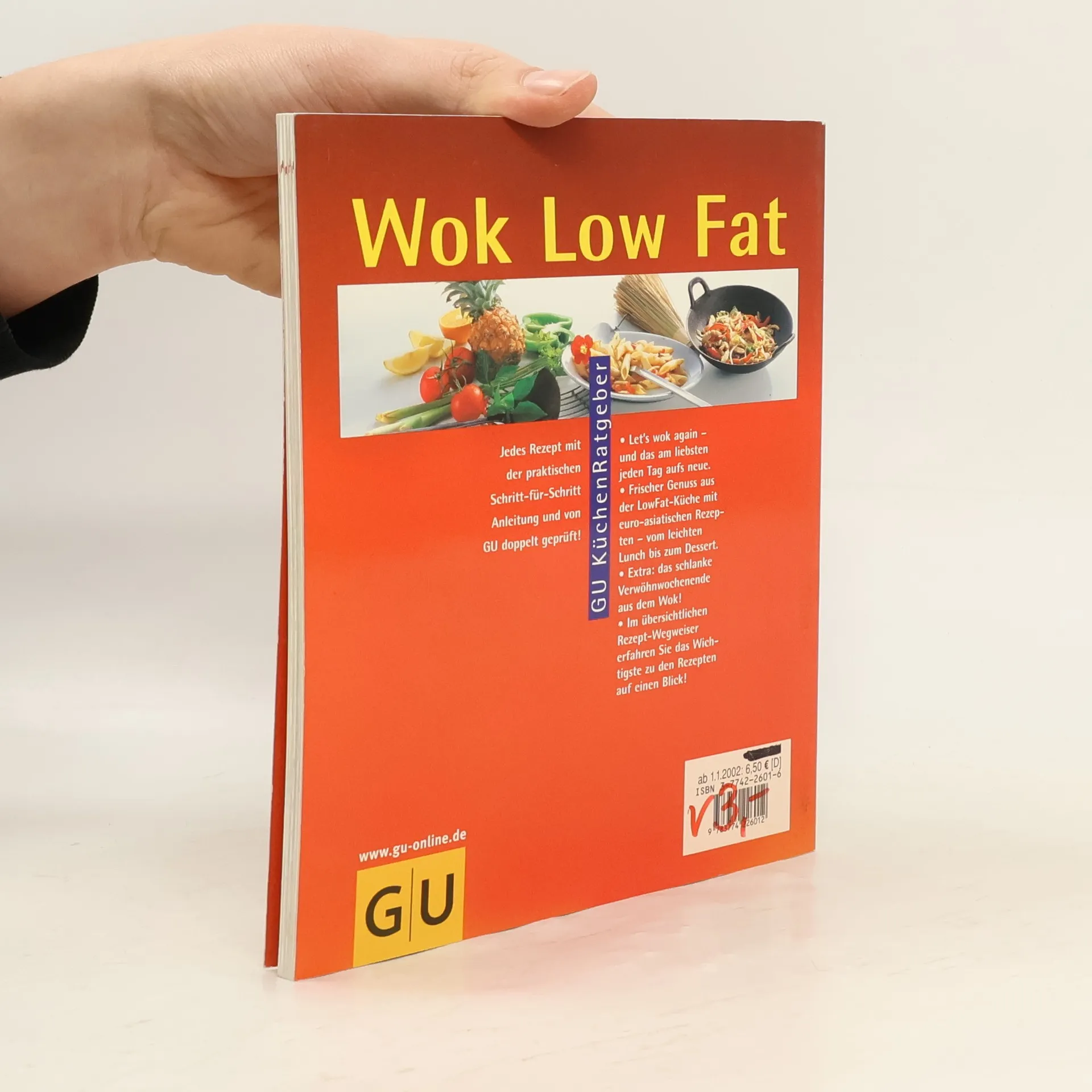 Jeder weiss es inzwischen: Eine gesunde Ernaehrung zeichnet sich durch ihren geringen Fettanteil aus. Und auch wer abnehmen will, versucht Fette zu vermeiden. Der Wok ist dazu das ideale Kochgeraet. Durch seinen kleinen, sehr heissen Boden benoetigt man bei der Zubereitung im Wok geringe Mengen Fett und gart ausserdem besonders vitaminschonend. Dieser KüchenRatgeber zeigt eine breite Palette der moeglichen Zubereitungen. Es muss nicht immer asiatisch sein. Die leichten Fusion-Rezepte vereinen westliche und oestliche Geschmacksrichtungen und machen den Wok zum Kochtopf fuer jede Gelegenheit.