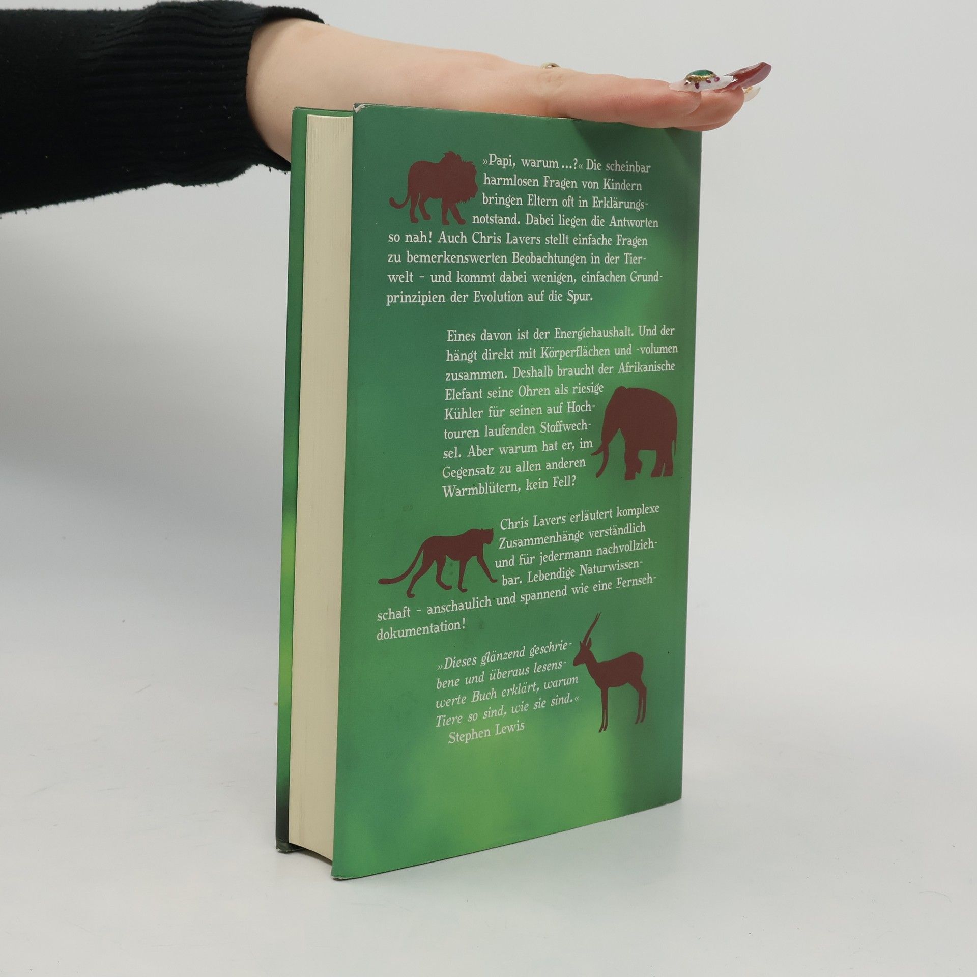 Papi, warum ...? Die scheinbar harmlosen und naiven Fragen von Kindern bringen Eltern oft in Erklärungsnot - und die Kinder wissen am Ende immer noch nicht, warum Gazellen schlanke Beine und Giraffen einen langen Hals haben oder warum Enten auf einer gefrorenen Eisfläche nicht festfrieren. Das kennt auch Chris Lavers noch von früher. Heute ist er Dozent für Ökologie und hat ein Buch geschrieben, das komplexe Zusammenhänge verständlich und für jedermann nachvollziehbar erläutert. Und viele scheinbar naive Fragen entpuppen sich dabei als Schlüssel für das Verständnis grundlegender "kologischer (Über-) Lebensstrategien.