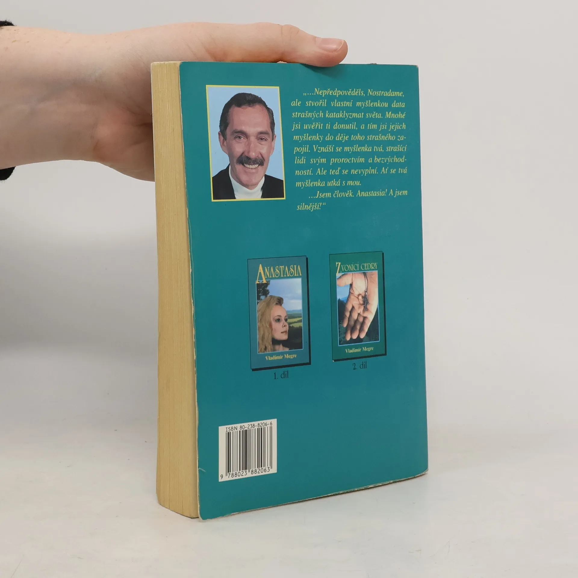 Zvonící cedry Ruska, kniha třetí. Nepředpověděls, Nostradame, ale stvořil svou vlastní myšlenkou data strašných kataklyzmat světa. Mnohé jsi uvěřit ti donutil, a tím jsi jejich myšlenky do děje toho strašného zapojil. Vznáší se myšlenka tvá, strašící lidi svým proroctvím a bezvýchodností. Ale teď se nevyplní. Ať se tvá myšlenka utká s mou. ...Jsem člověk. Anastasia! A jsem silnější!