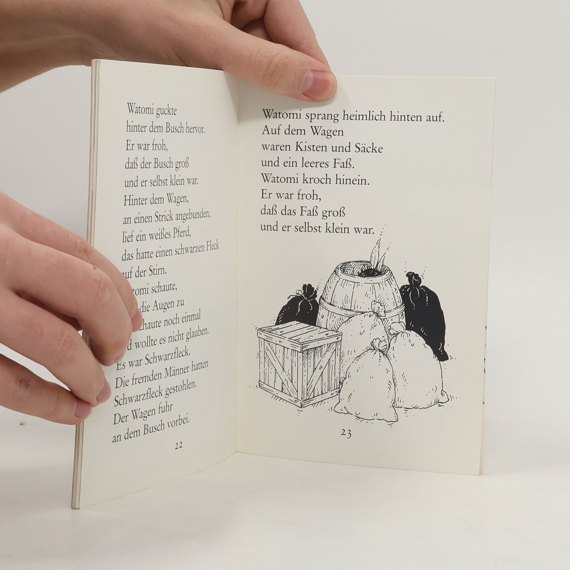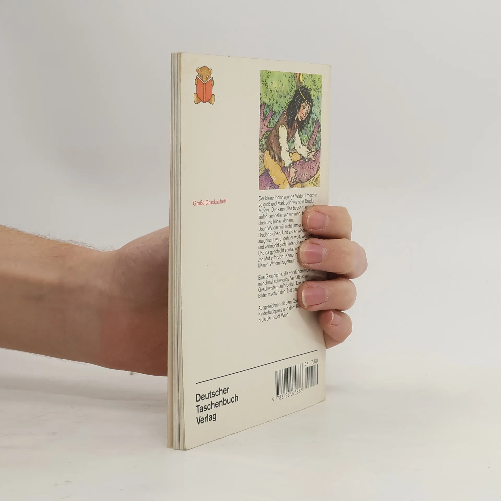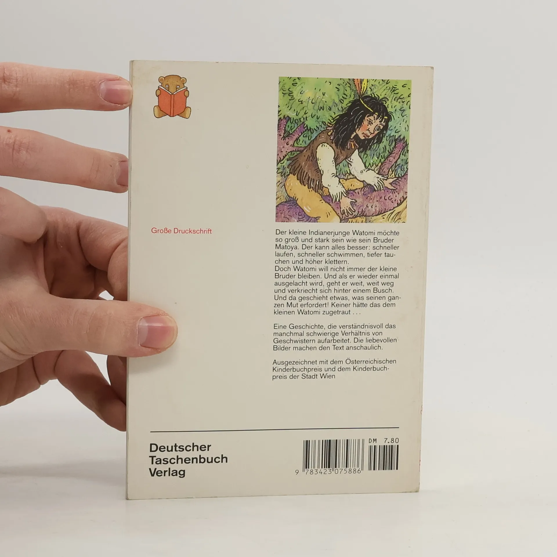 Hübsche kleine Geschichte zum Thema Indianer", an deren Ende auch Watomi dank seiner Heldentaten zu den Grossen gehört. Grosse Druckschrift. (Quelle: Verzeichnis ZKL).