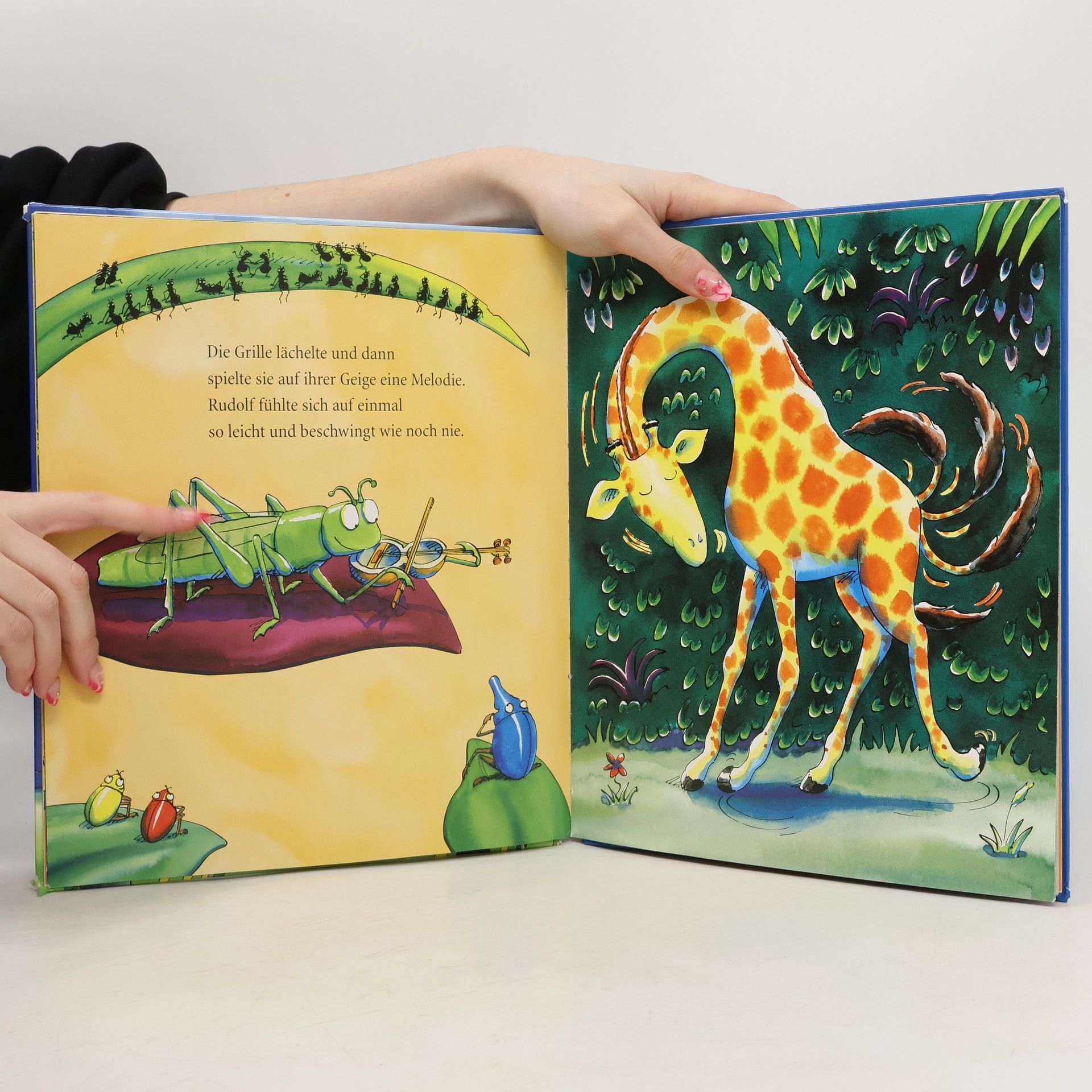 Rudolf, die Giraffe, ist traurig; er tanzt beim Dschungeltanzfest nicht mit. Aber als er seine ureigene Musik hört, legt er eine furiose Nummer aufs Tanzparkett.