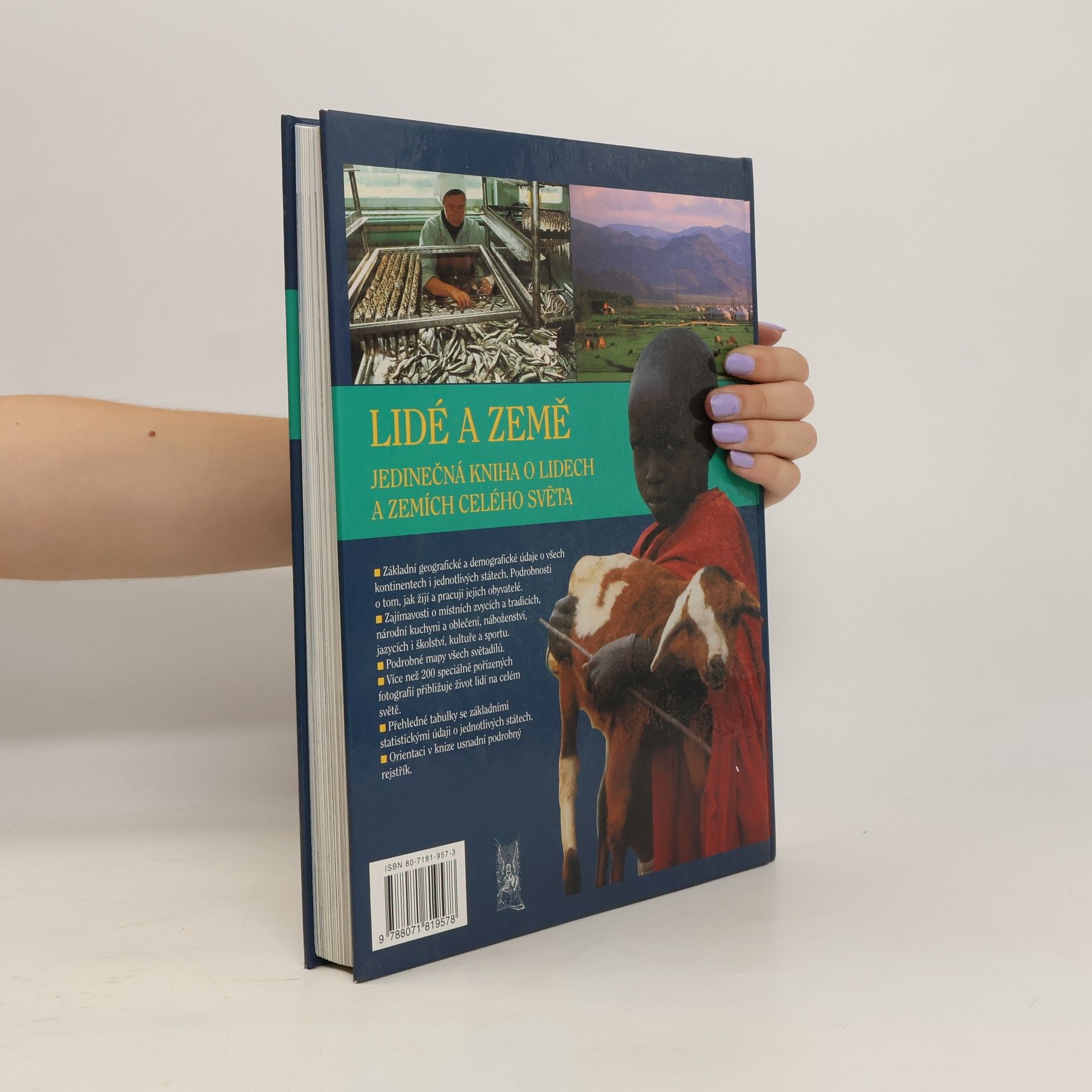 Kniha o lidech a zemích celého světa. - Základní geografické a demografické údaje o všech kontinentech i jednotlivých státech. Podrobnosti o tom, jak žijí a pracují jejich obyvatelé. - Zajímavosti o místních zvycích a tradicích, národní kuchyni a oblečení, náboženství, jazycích i školství, kultuře a sportu. - Podrobné mapy všech světadílů. - Více než 200 fotografií přibližuje život lidí na celém světě.
