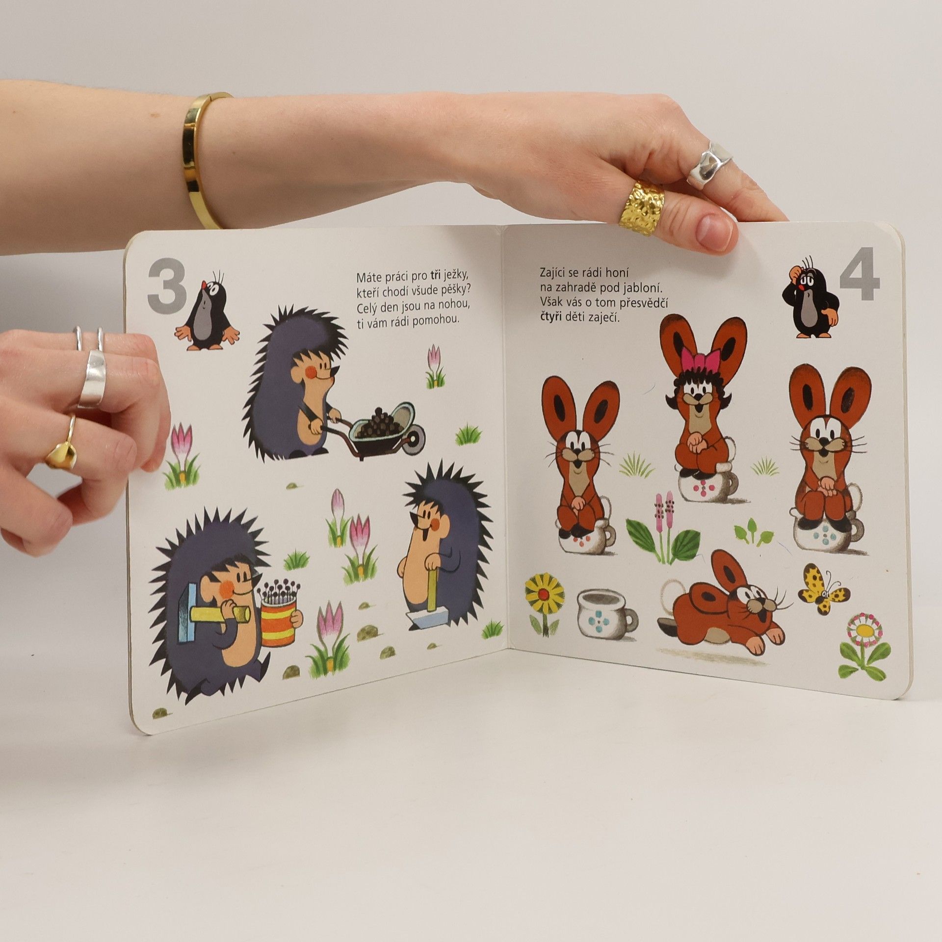 V páté z řady půvabných knížek pro ty nejmenší, kteří se teprve začínají seznamovat s taji čtení, psaní a počítání, radí Krtek a jeho kamarádi dětem, jak si poradit s počítáním. Číslovky od 1 do 10 si malí matematici mohou osvojit na zvířátkách a věcech z Krtkova světa. Kromě oblíbených živých ilustraci Zdeňka Milera jim v tom napomohou i vynalézavé verše Jiřího Žáčka.