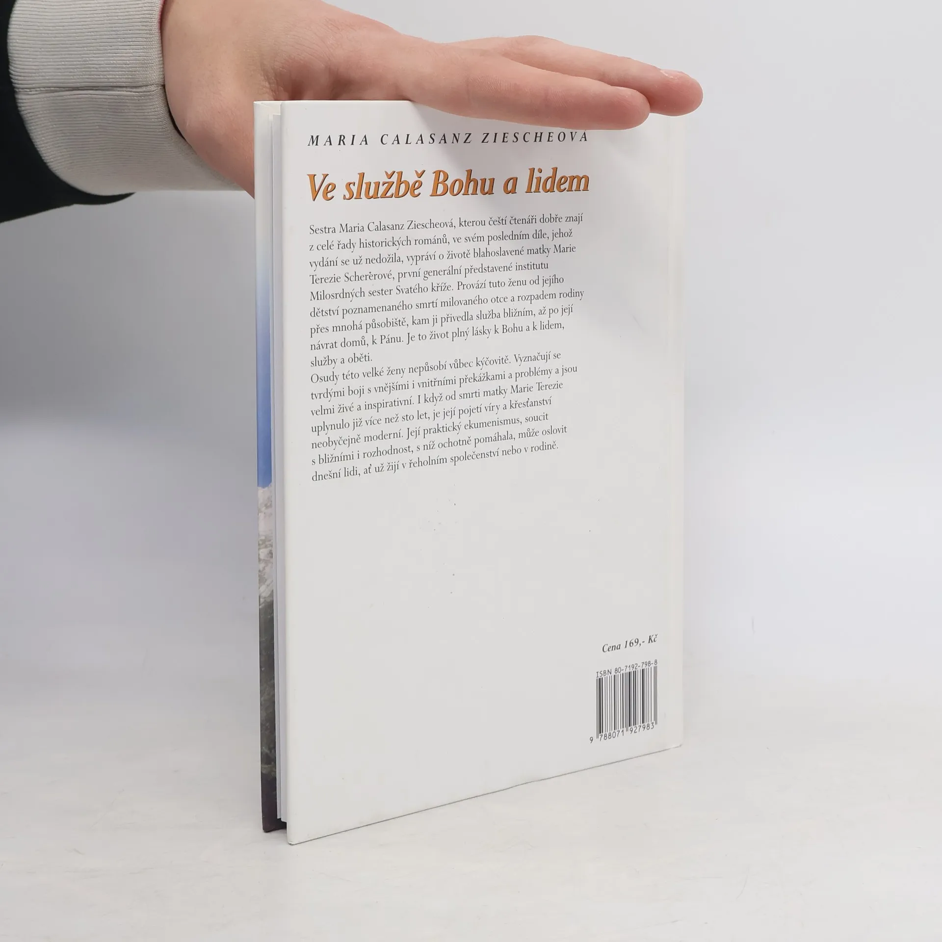 Život blahoslavené Marie Terezie Schererové. Vyprávění o této švýcarské řeholnici je velmi čtivé a poutavé. Marie Terezie Schererová prožila svůj život v blízkosti Boží. Právě ze svého spojení s Bohem čerpala nesmírnou sílu a lásku, která jí pomáhala ve službě bližním. S jeho pomocí dokázala věci, které byly nad její slabé síly. Dokázala obětavě reagovat na potřeby doby i na potřeby svých bližních. Je pro nás svědectvím, že život v lásce k Bohu a k lidem přináší vzácné plody a že je potřeba rozvíjet oba tyto rozměry lidské lásky. Její osudy i postoje jsou povzbuzením ve chvílích, kdy nám připadá, že nám problémy přerůstají přes hlavu.