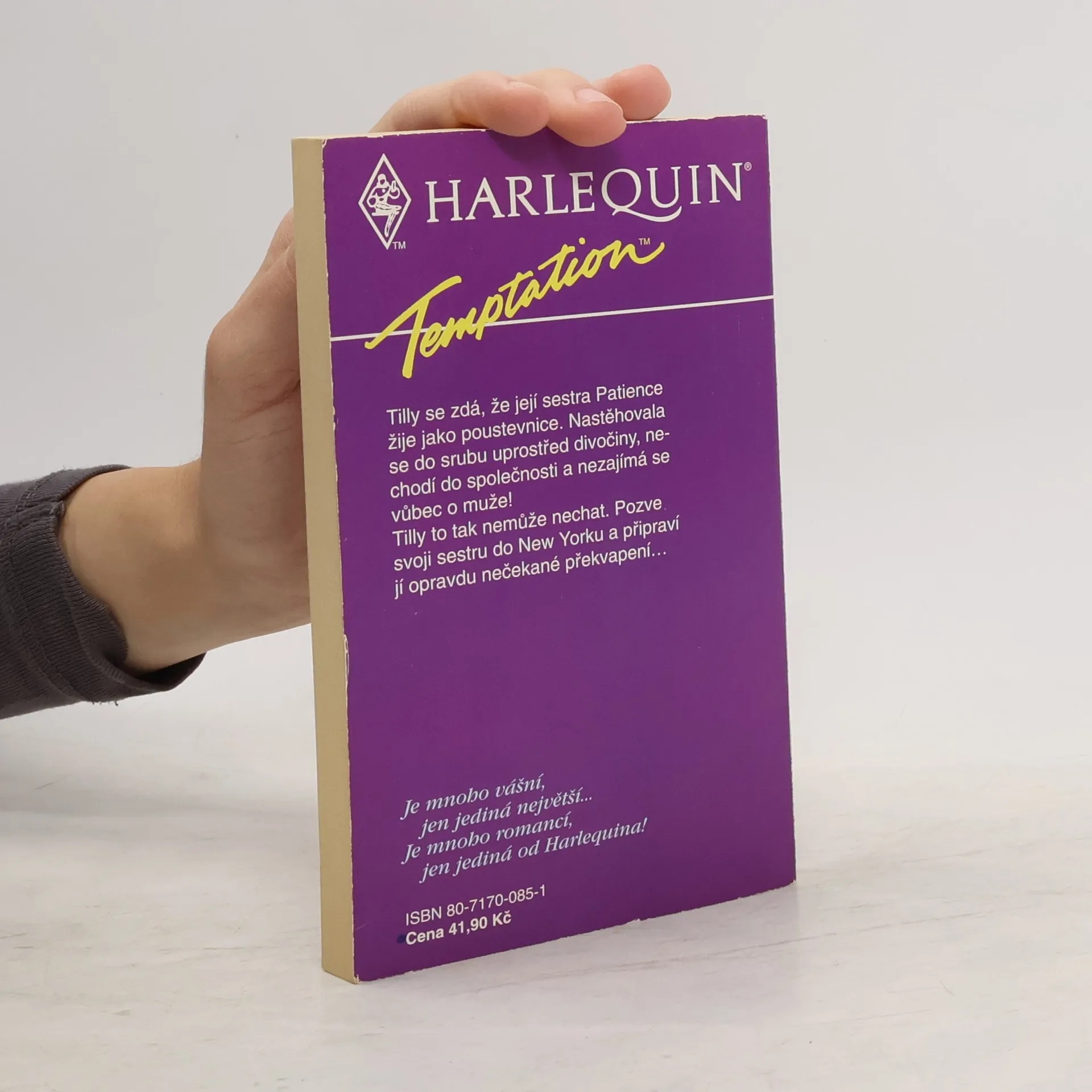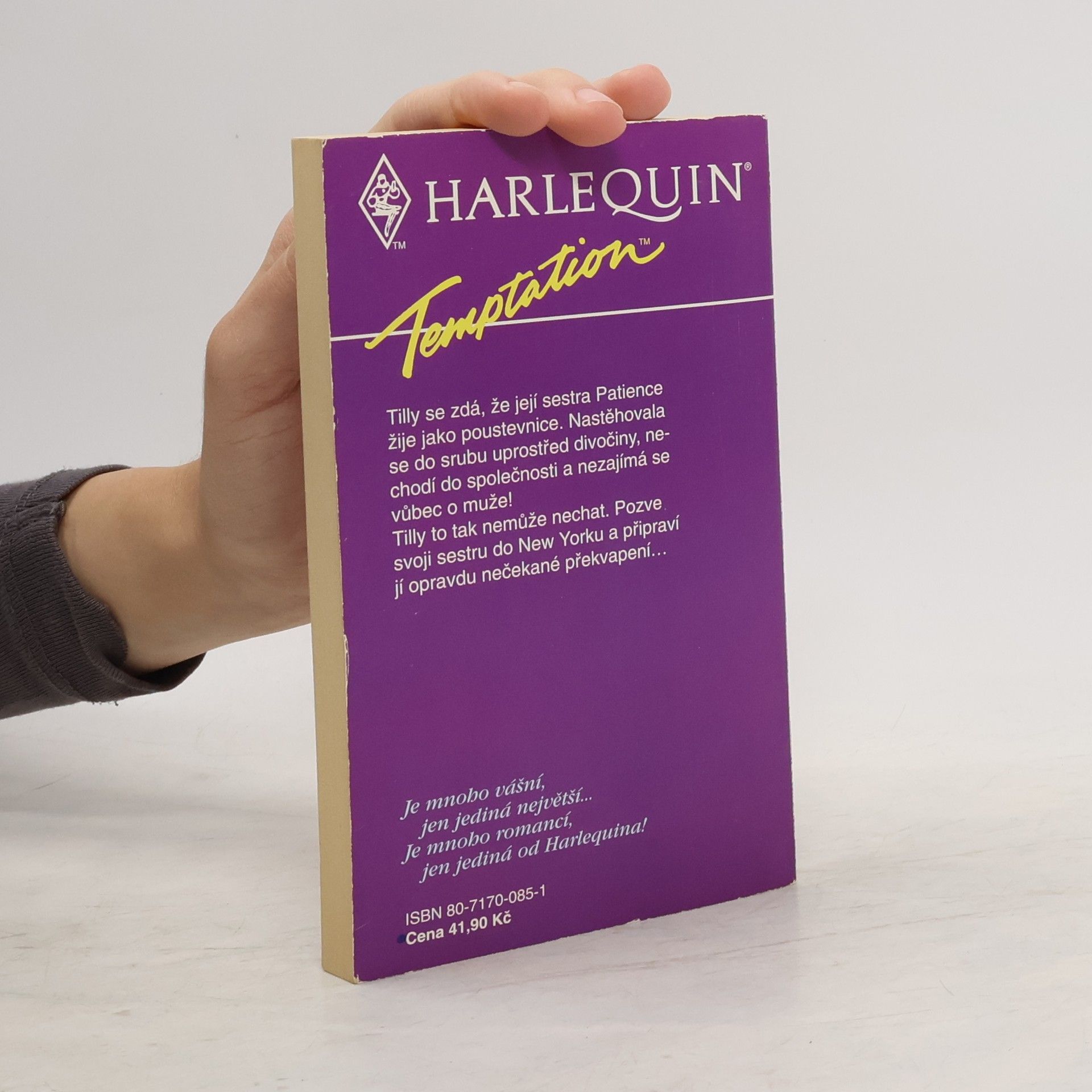 Tilly se zdá, že její sestra Patience žije jako poustevnice. Nastěhovala se do srubu uprostřed divočiny, nechodí do společnosti a nezajímá se vůbec o muže! Tilly to tak nemůže nechat. Pozve svoji sestru do New Yorku a připraví jí opravdu nečekané překvapení...