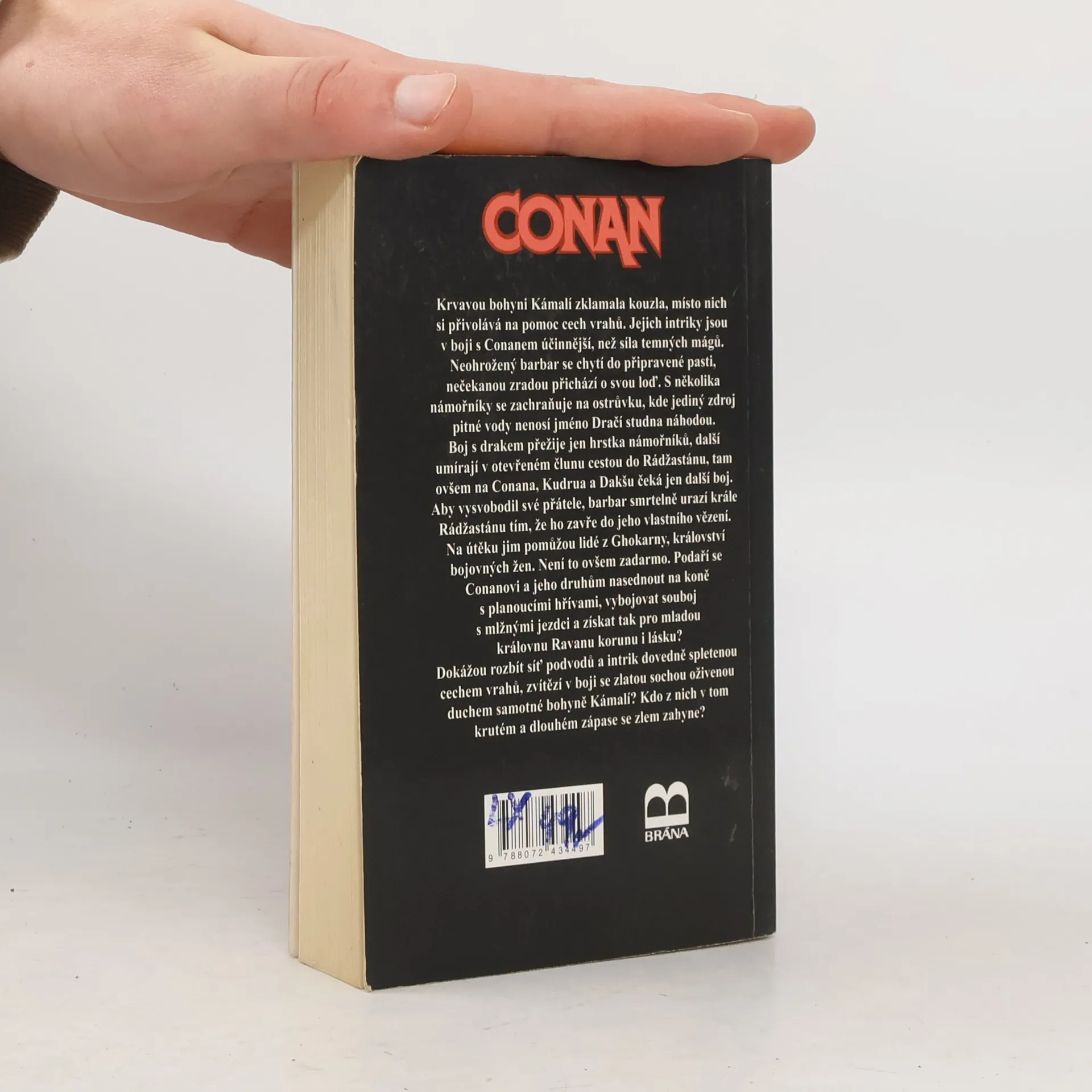 Krvavou bohyni Kámalí zklamala kouzla, přivolává si tedy na pomoc cech vrahů. Jejich intriky jsou v boji s Conanem účinnější než síla temných mágů. Neohrožený barbar se chytí do připravené pasti. S několika námořníky se zachraňuje na ostrůvku, kde jediný zdroj pitné vody nenosí jméno Dračí studna náhodou. Boj s drakem přež?e jen hrstka námořníků, další umírají v otevřeném člunu cestou do Rádžastánu, tam ovšem na Conana, Kudrua a Dakšu čeká jen další boj. Aby vysvobodil své přátele, barbar smrtelně urazí krále Rádžastánu. Na útěku jim pomohou lidé z Ghokarny, království bojovných žen. Není to ovšem zadarmo. Podaří se Conanovi a jeho druhům nasednout na koně s planoucími hřívami, zvítězit v souboji s mlžnými jezdci a získat pro mladou královnu Ravanu korunu i lásku?