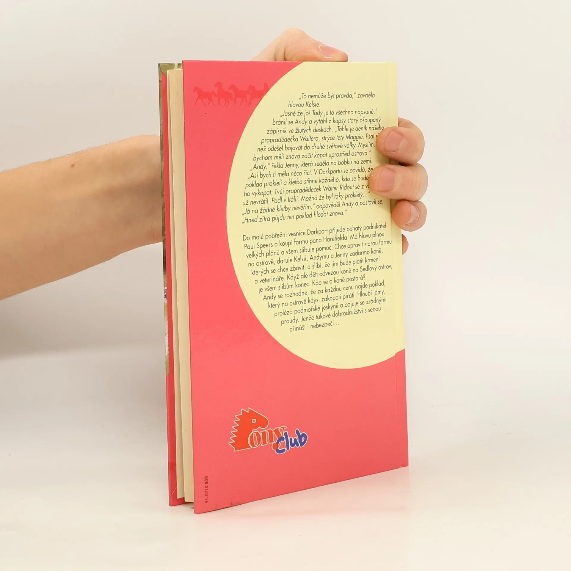 Do malé pobřežní vesnice Darkport přijede bohatý podnikatel Paul Speers a koupí farmu pana Harefielda. Má hlavu plnou velkých plánů a všem slibuje pomoc.Chce opravit starou farmu na ostrově, daruje Kelsii, Andymu a Jenny zadarmo koně, kterých se chce zbavit, a slíbí, že jim bude platit krmení a veterináře. Když ale děti odvezou koně na Sedlový ostrov, je všem slibům konec. Kdo se o koně postará? Andy se rozhodne, že za každou cenu najde poklad, který na ostrově kdysi zakopali piráti. Hloubí jámy, prolézá podmořské jeskyně a bojuje se zrádnými proudy. Jenže taková dobrodružství s sebou přináší i nebezpečí. Druhý díl knižní řady Sedlový ostrov.