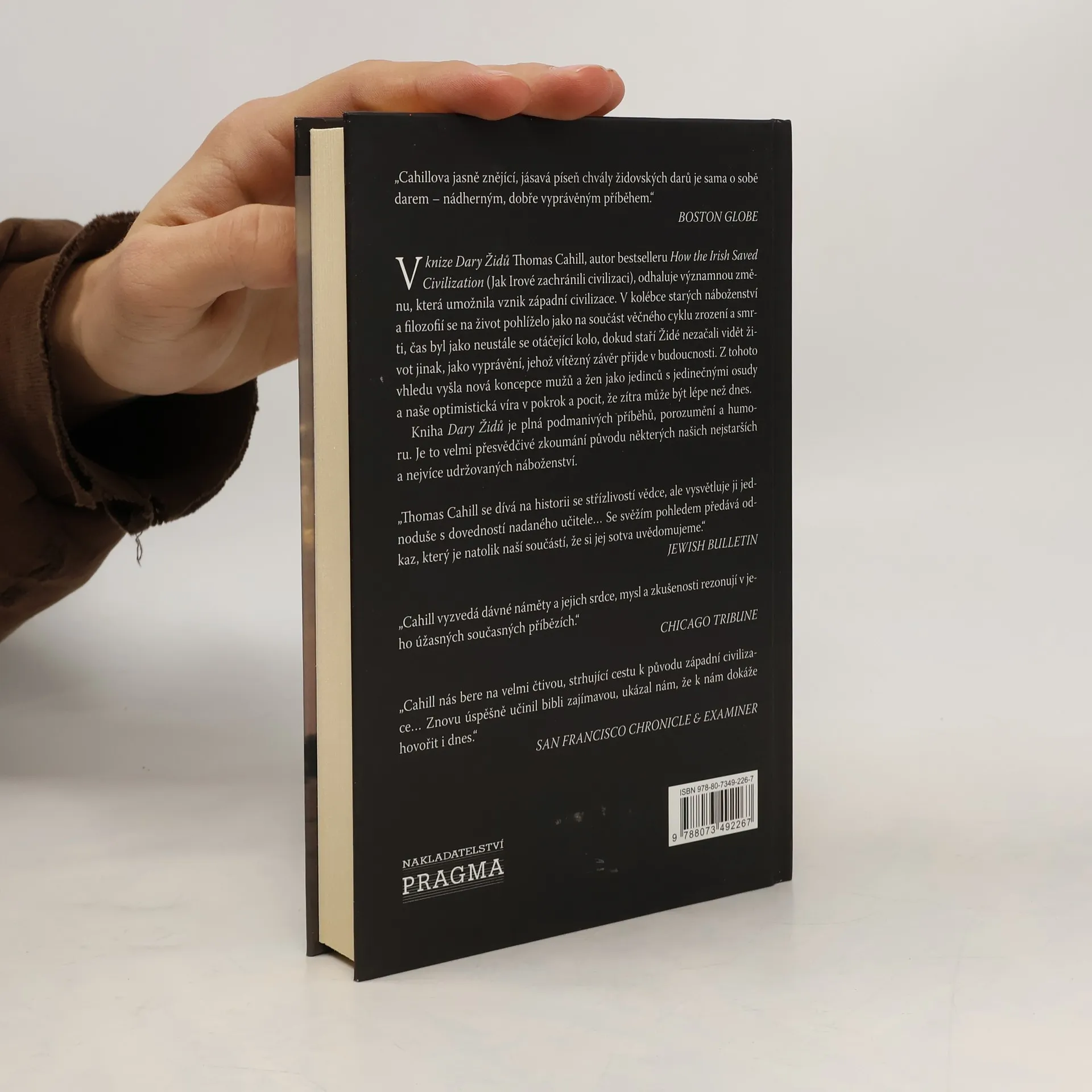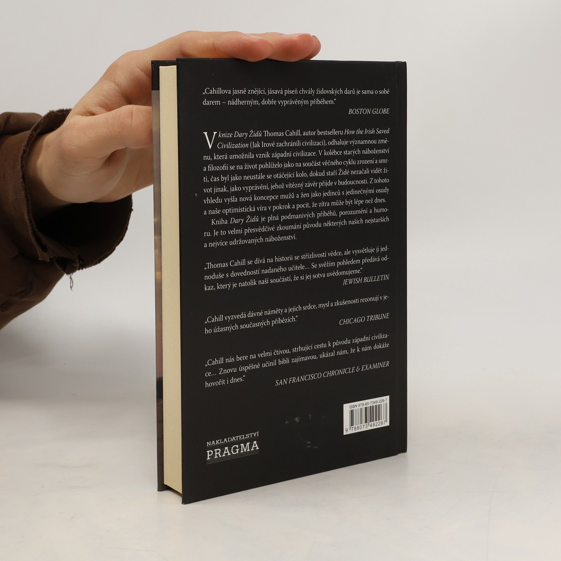 Kniha poutavě popisuje, jak kmen pouštních kočovníků změnil způsob, jakým většina z nás myslí a cítí. Thomas Cahill, autor bestselleru Jak Irové zachránili civilizaci, odhaluje vznik západní civilizace. V kolébce starých náboženství a filozofií se na život pohlíželo jako na součást věčného cyklu zrození a smrti, dokud staří Židé nezačali vidět život jako vyprávění, jehož vítězný závěr přijde v budoucnosti. Z tohoto vhledu vyšla nová koncepce mužů a žen jako jedinců s jedinečnými osudy a naše optimistická víra v pokrok a pocit, že zítra může být lépe než dnes. Kniha Židovské dary je plná podmanivých příběhů, porozumění a humoru.